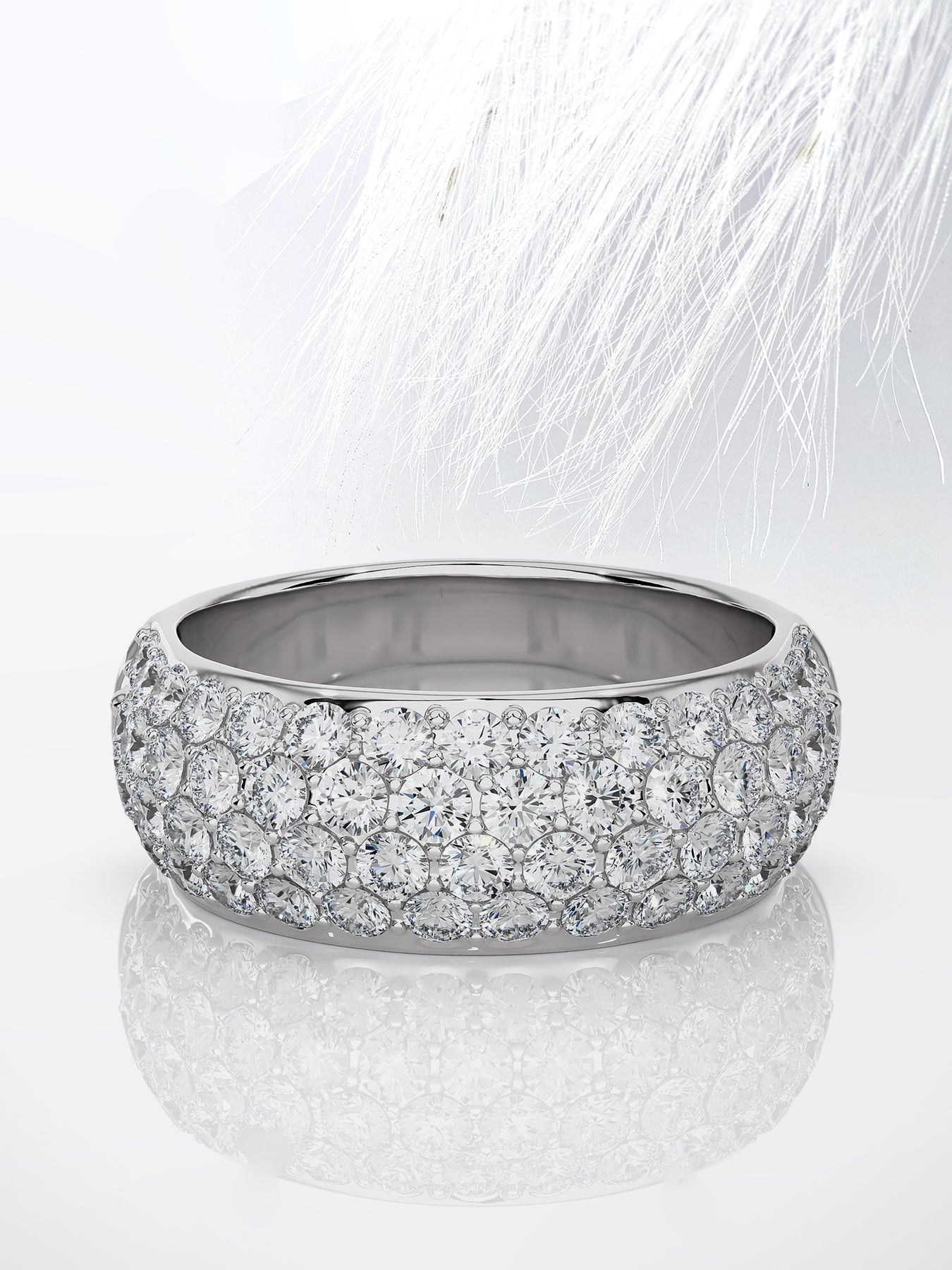 Round Cut Clustered Moissanite Men's Wedding Band In White Gold