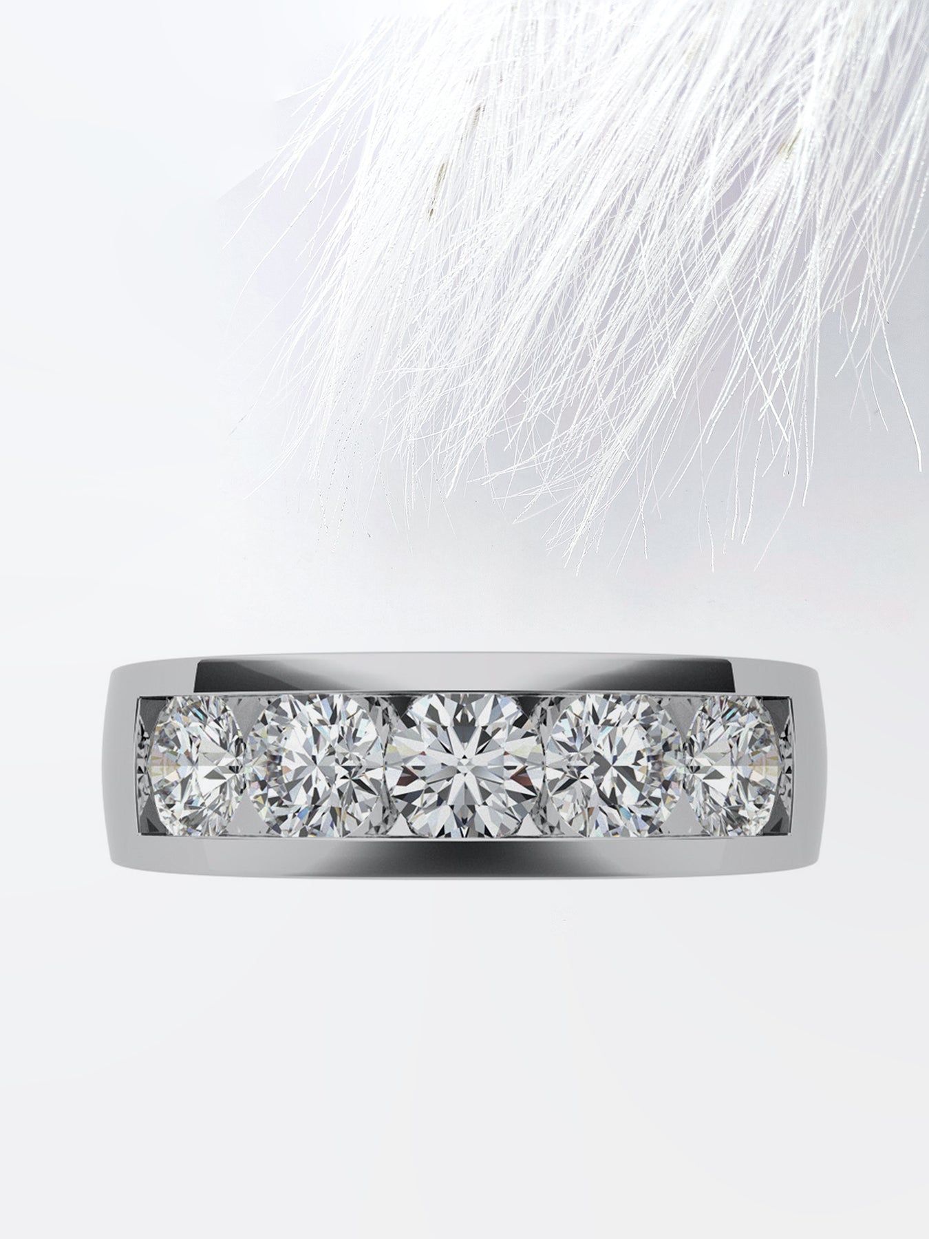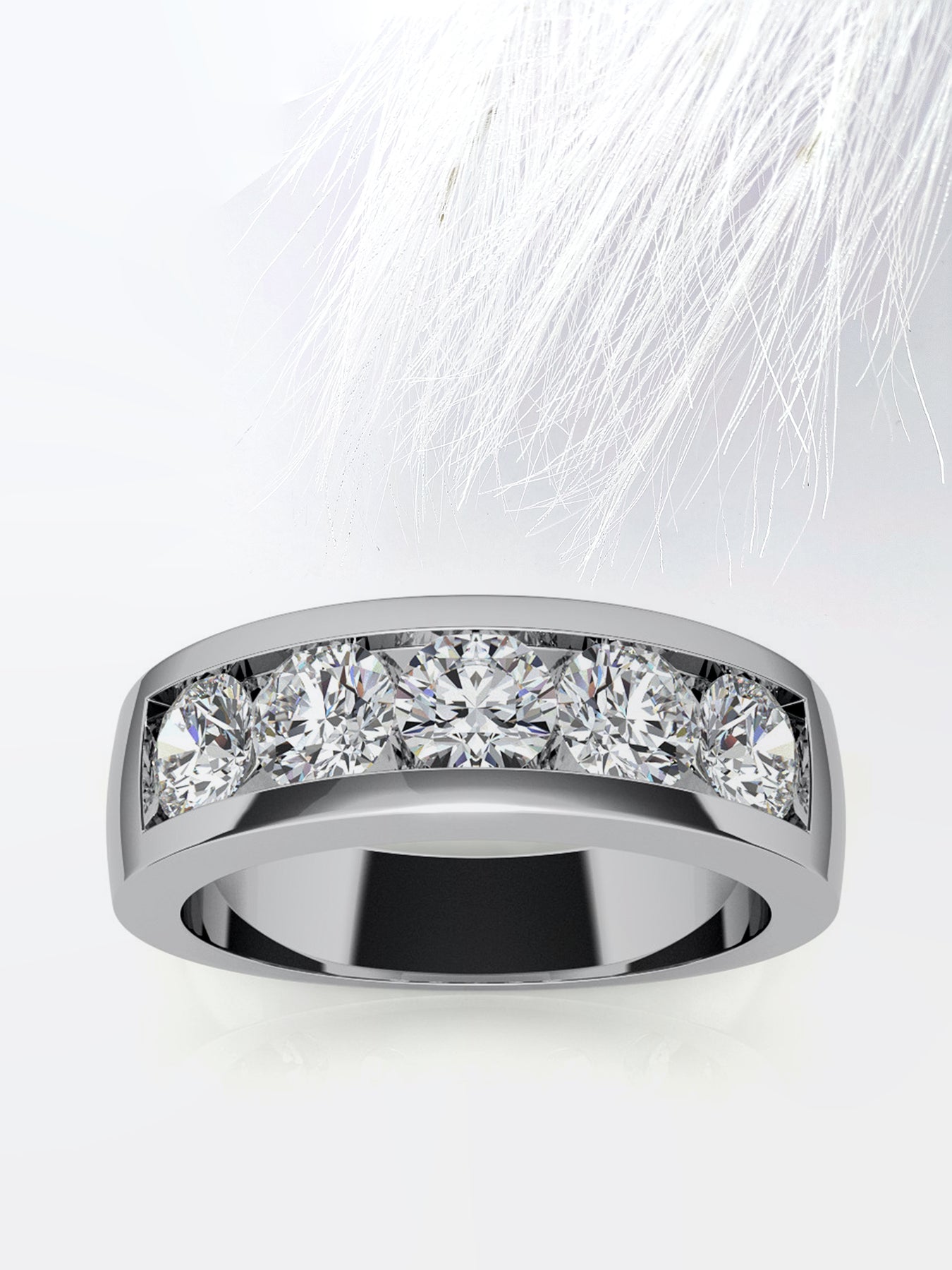 Round Cut Five Stone With Channel Row Moissanite Men&
