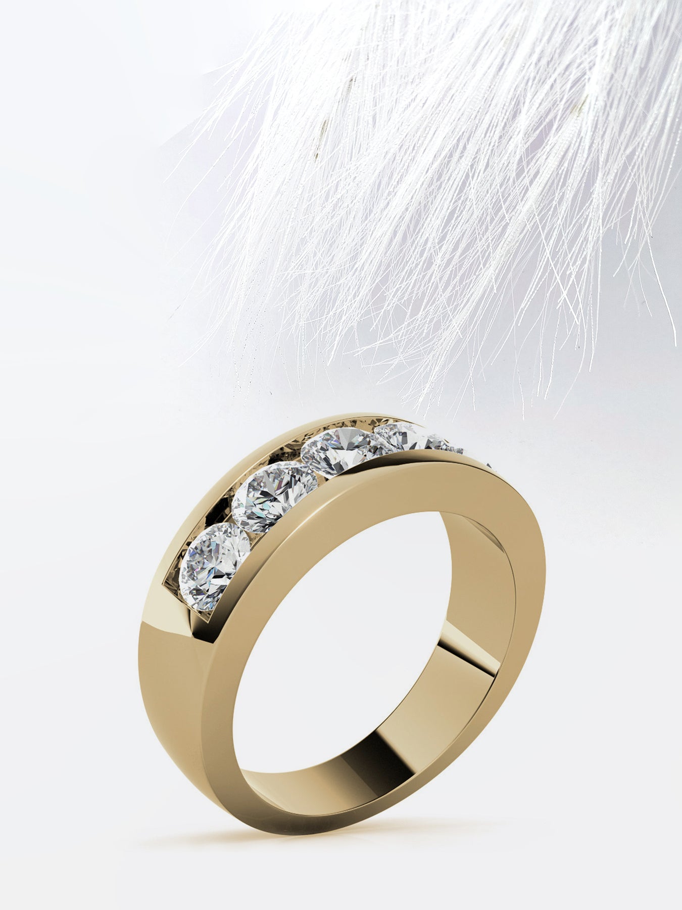 Round Cut Five Stone With Channel Row Moissanite Men's Diamond Wedding Band