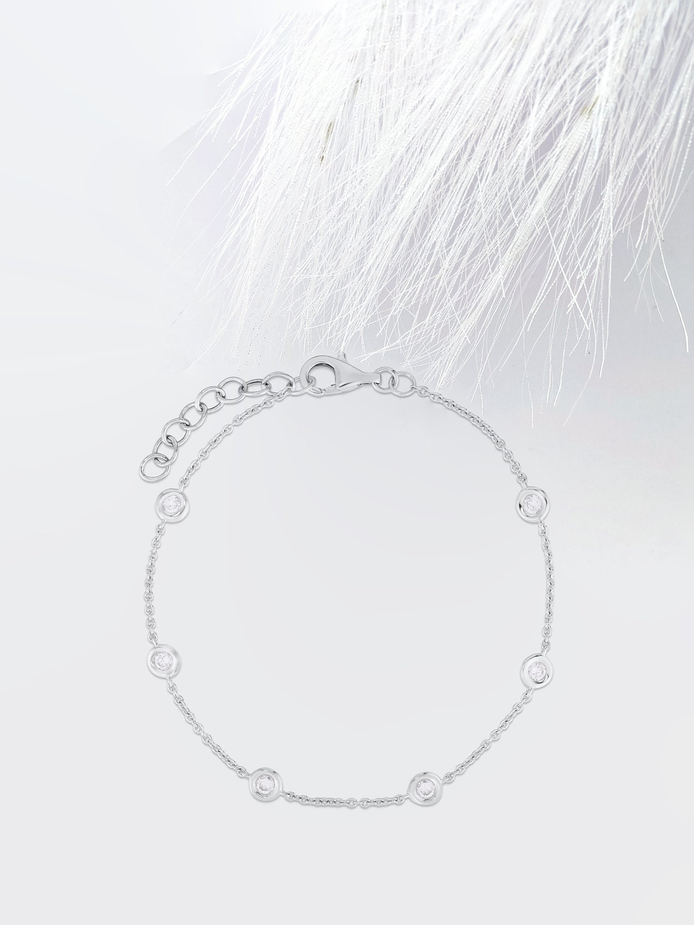 ✥ Elevate her wrist with the delicate elegance of our 0.11ct Round Cut Bezel Set Tennis Diamond Moissanite Bracelet, meticulously crafted to add a touch of timeless sophistication to her ensemble. Each link features a shimmering round-cut Moissanite diamond delicately nestled within a secure bezel setting, exuding understated luxury and refinement. Fashioned in radiant white gold, this bracelet offers a seamless blend of classic charm and modern style, making it the perfect accessory for any occasion. Whether worn as a symbol of love or as a chic addition to her jewelry collection, this bracelet is sure to be cherished for its exquisite beauty and craftsmanship. A perfect gift to celebrate her unique elegance, this bracelet epitomizes grace and sophistication.