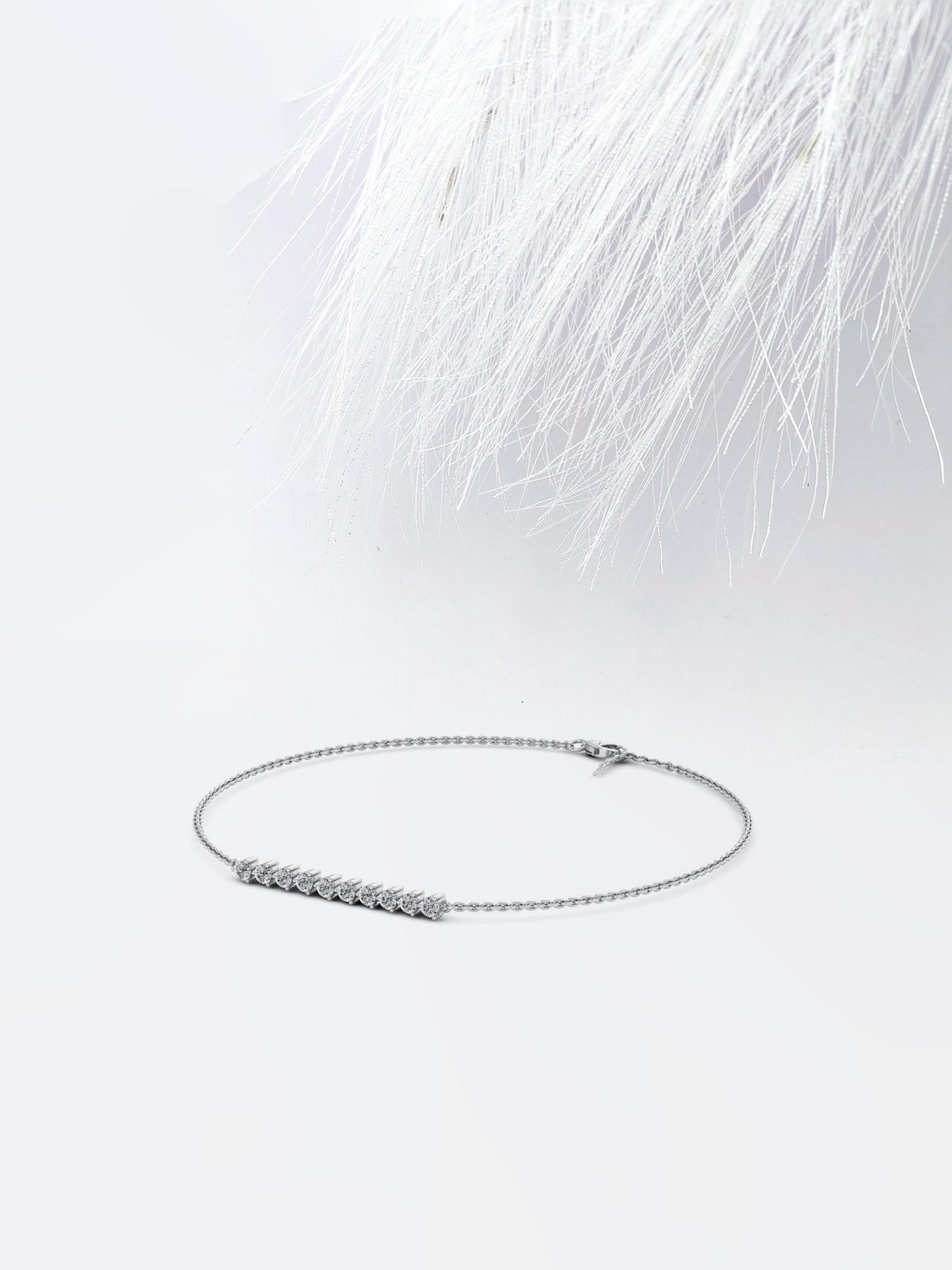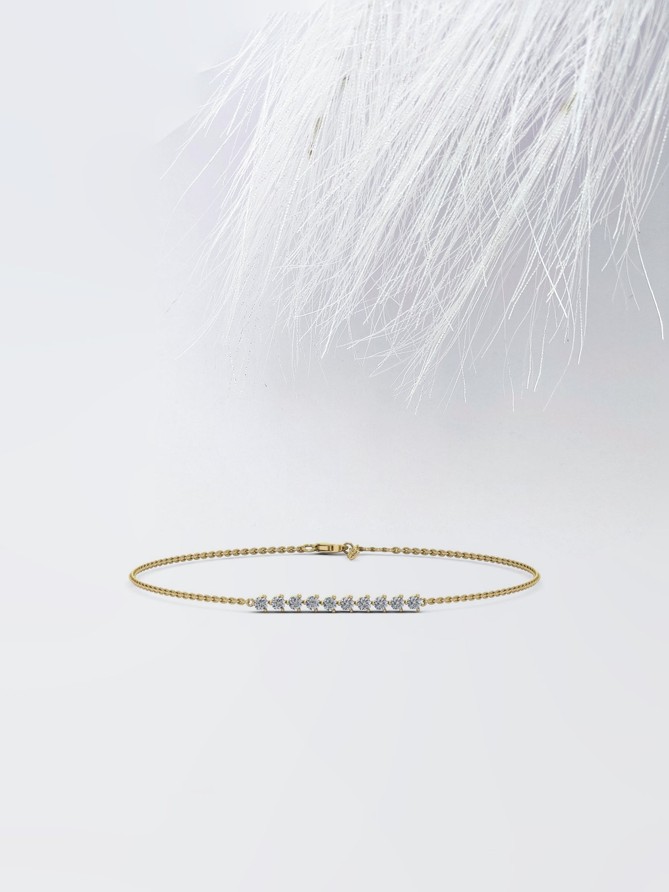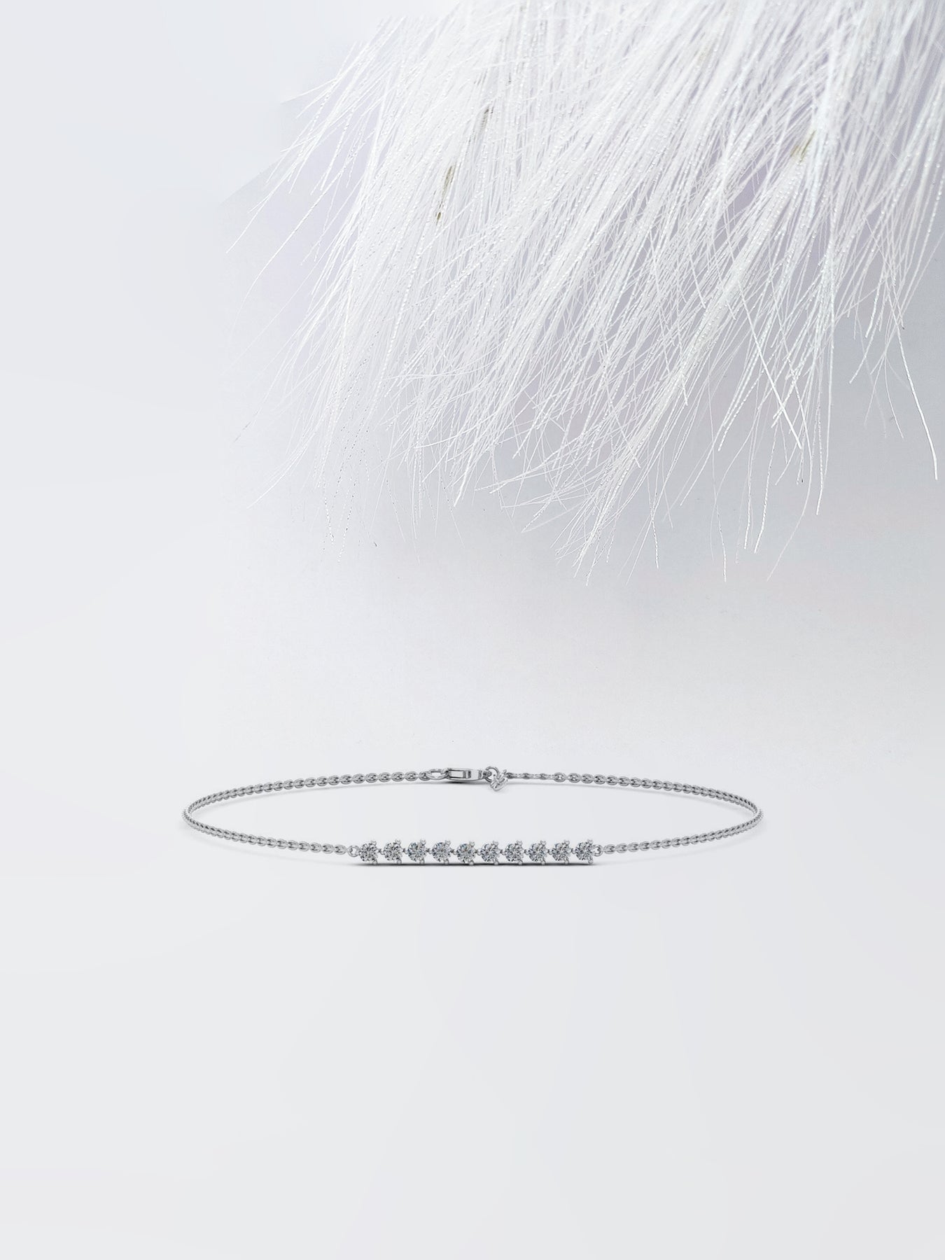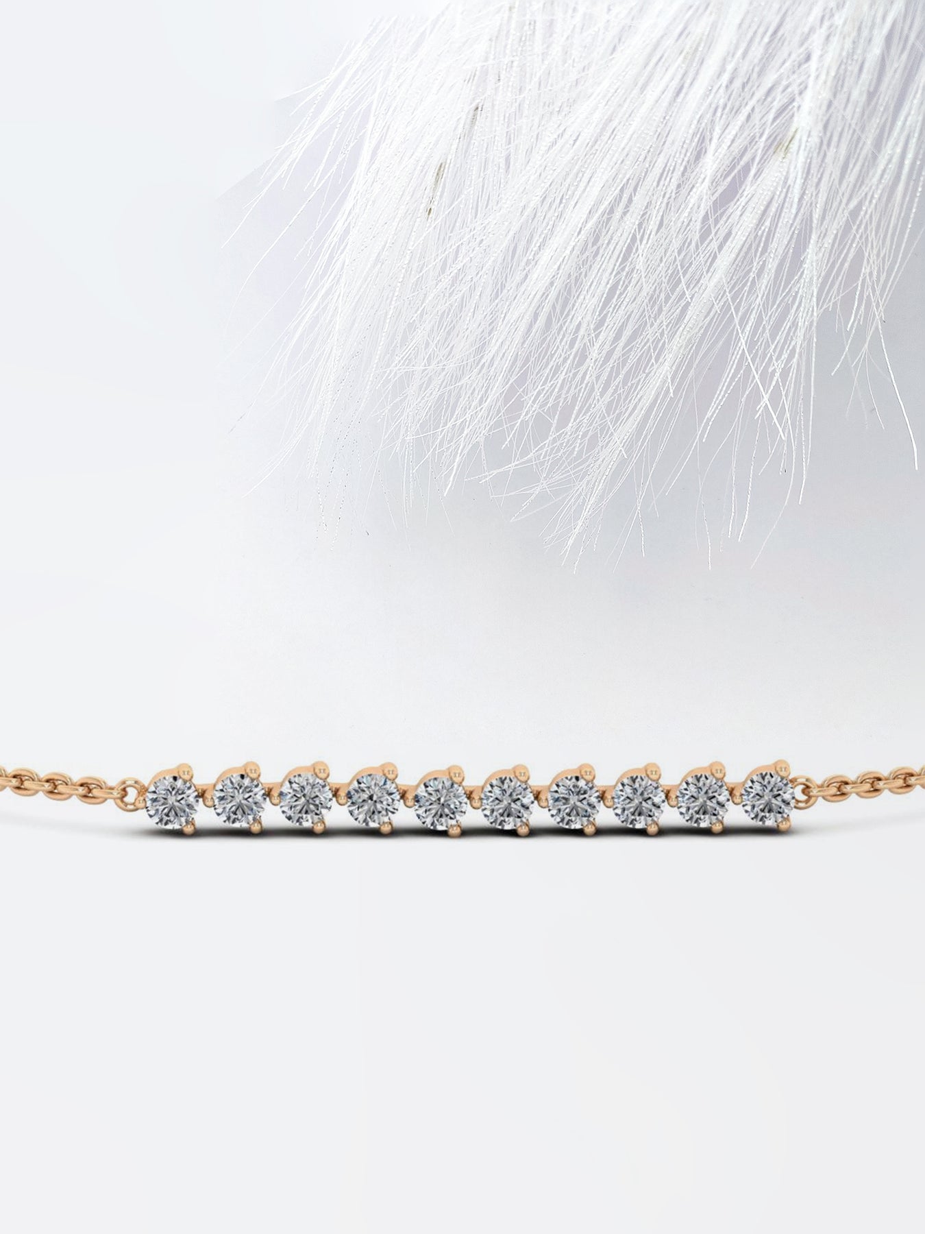 ✦ Illuminate her wrist with our enchanting 1.1ct Round Cut Moissanite Diamond Bracelet for Women. Each meticulously crafted link showcases a brilliant round-cut Moissanite diamond, renowned for its exceptional sparkle and brilliance. The timeless design of this bracelet adds a touch of elegance to any ensemble, making it perfect for both formal occasions and everyday wear. Whether worn alone as a statement piece or layered with other bracelets for a personalized look, this bracelet exudes sophistication and luxury. Whether gifted to a loved one or as a well-deserved treat for yourself, this exquisite bracelet is sure to become a cherished favorite in any jewelry collection, symbolizing everlasting elegance and style.