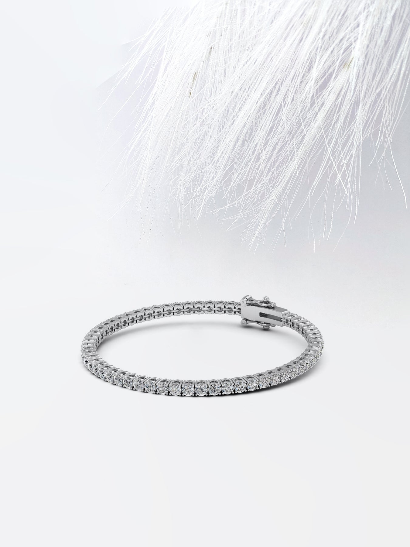 ✥ Elevate your wrist with our stunning 10.25 Round Cut Tennis Moissanite Diamond Bracelet for Women. Each meticulously crafted link features a brilliant round-cut Moissanite diamond, renowned for its exceptional sparkle and fire, expertly set to create a seamless and elegant design. Whether worn as a statement piece for special occasions or as an everyday accessory, this bracelet exudes sophistication and luxury. The timeless tennis bracelet style adds a touch of glamour to any ensemble, making it a perfect addition to your jewelry collection. Whether gifted to a loved one or as a treat for yourself, this exquisite diamond bracelet is sure to dazzle and delight for years to come.