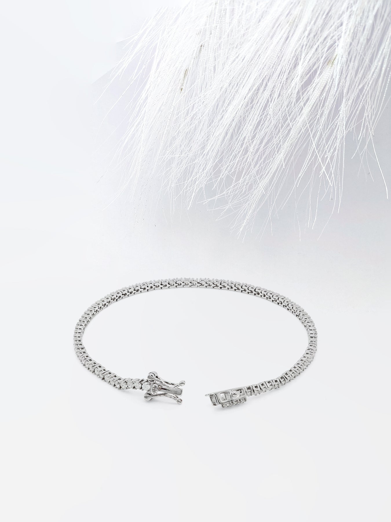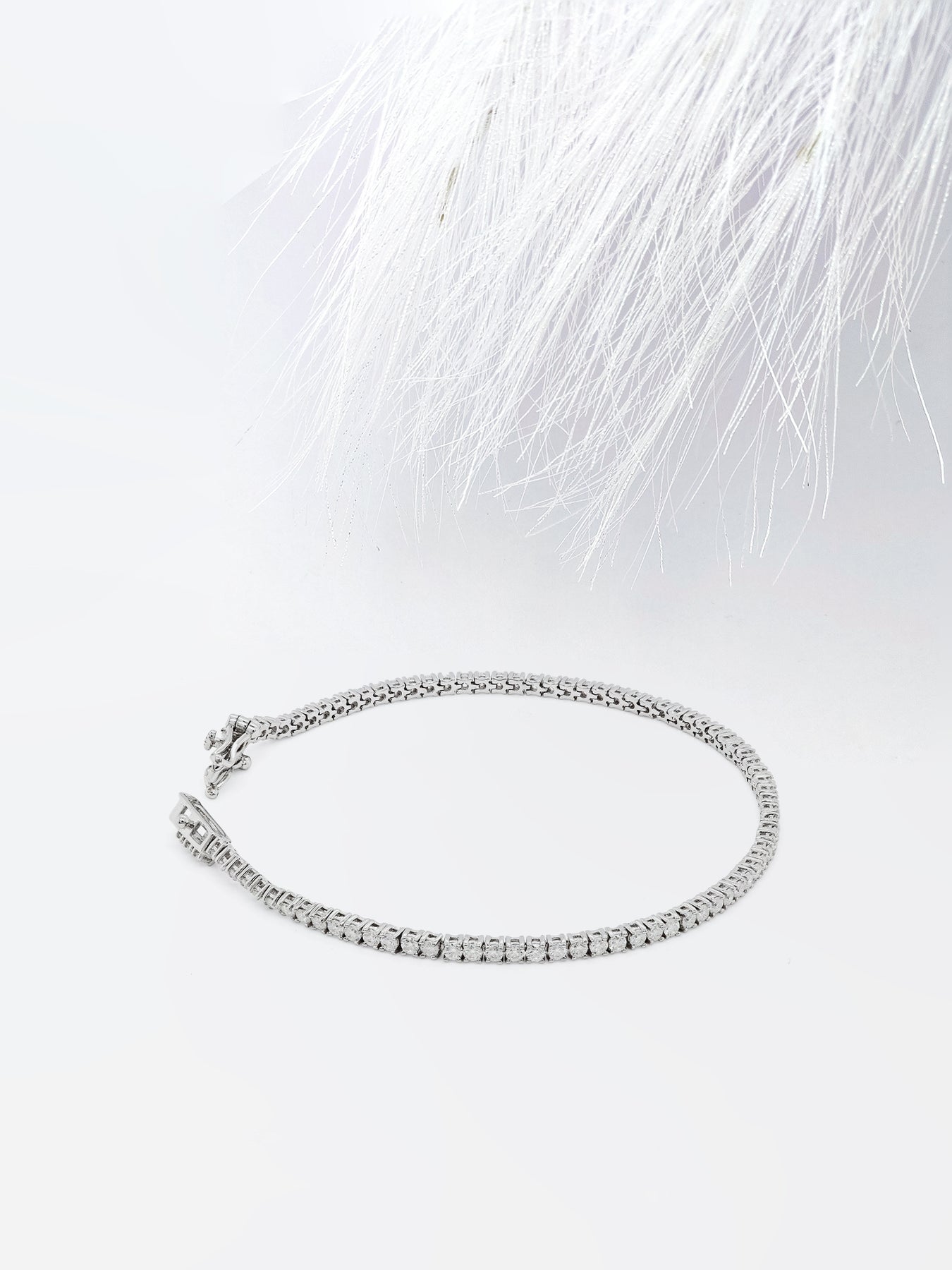 ✥ Add a touch of timeless elegance to your wrist with our 2.5 Round Cut Tennis Moissanite Diamond Bracelet for Women. Crafted to perfection, each link features a brilliant round-cut Moissanite diamond, renowned for its exceptional sparkle and brilliance. The classic tennis bracelet design ensures versatility, making it suitable for both formal occasions and everyday wear. Whether worn alone as a statement piece or paired with other bracelets for a layered look, this bracelet exudes sophistication and luxury. Whether purchased as a special gift or as a well-deserved treat for yourself, this exquisite bracelet is sure to become a cherished favorite in any jewelry collection, symbolizing everlasting elegance and style.