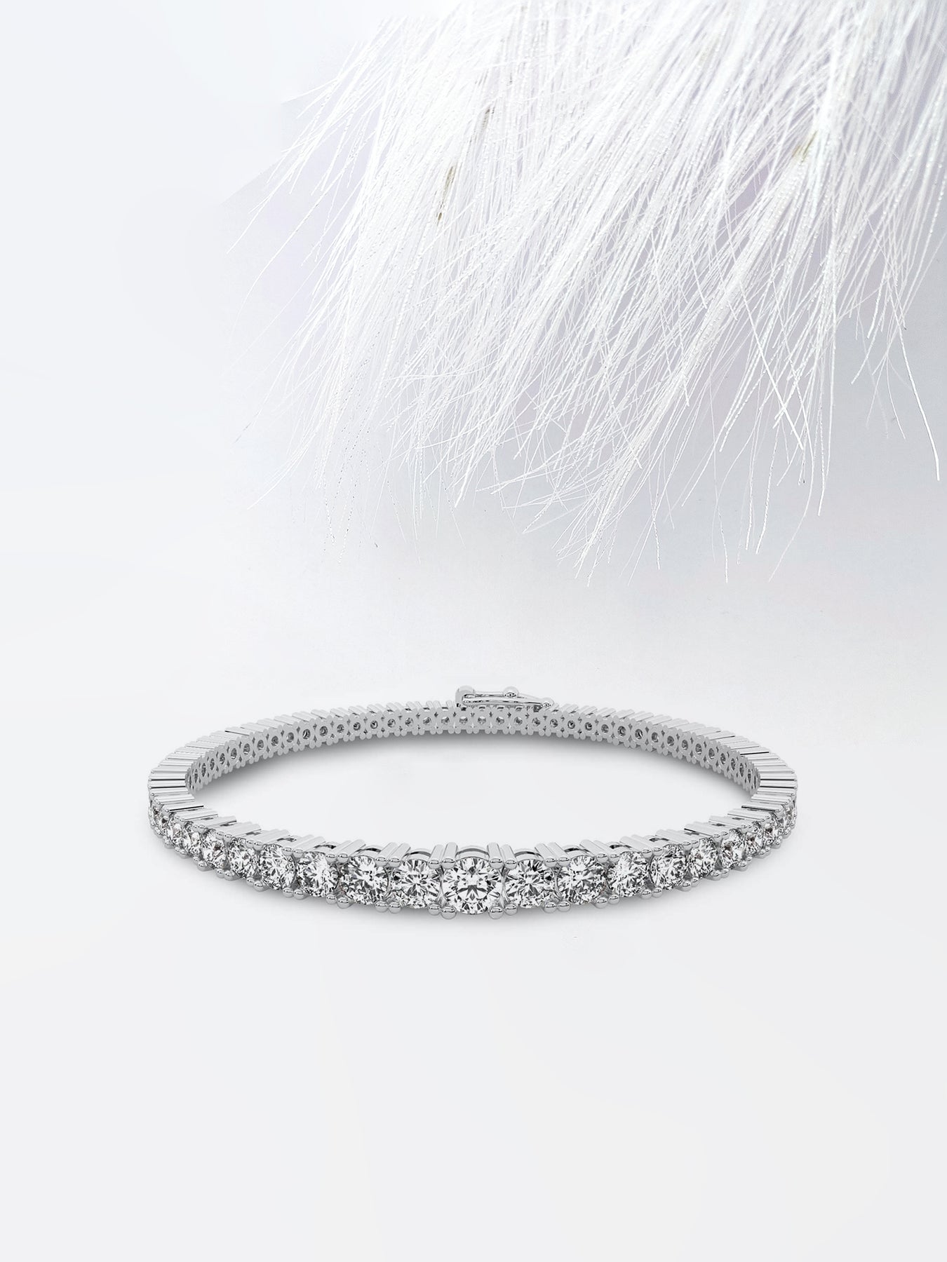 Adorn her wrist with the captivating brilliance of our 4.0ct Round Cut Moissanite Tennis Diamond Bracelet in 14k White Gold. Each meticulously crafted link showcases a stunning round-cut Moissanite diamond, renowned for its clarity and sparkle. Set in a classic tennis bracelet design, the shimmering Moissanite stones create a seamless and luxurious display of sophistication. Whether worn as a statement piece for special occasions or as an everyday accessory, this bracelet exudes timeless elegance and glamour. Perfect for gifting to a loved one or as a cherished addition to your own jewelry collection, this exquisite bracelet is sure to be treasured for its enduring beauty and style.