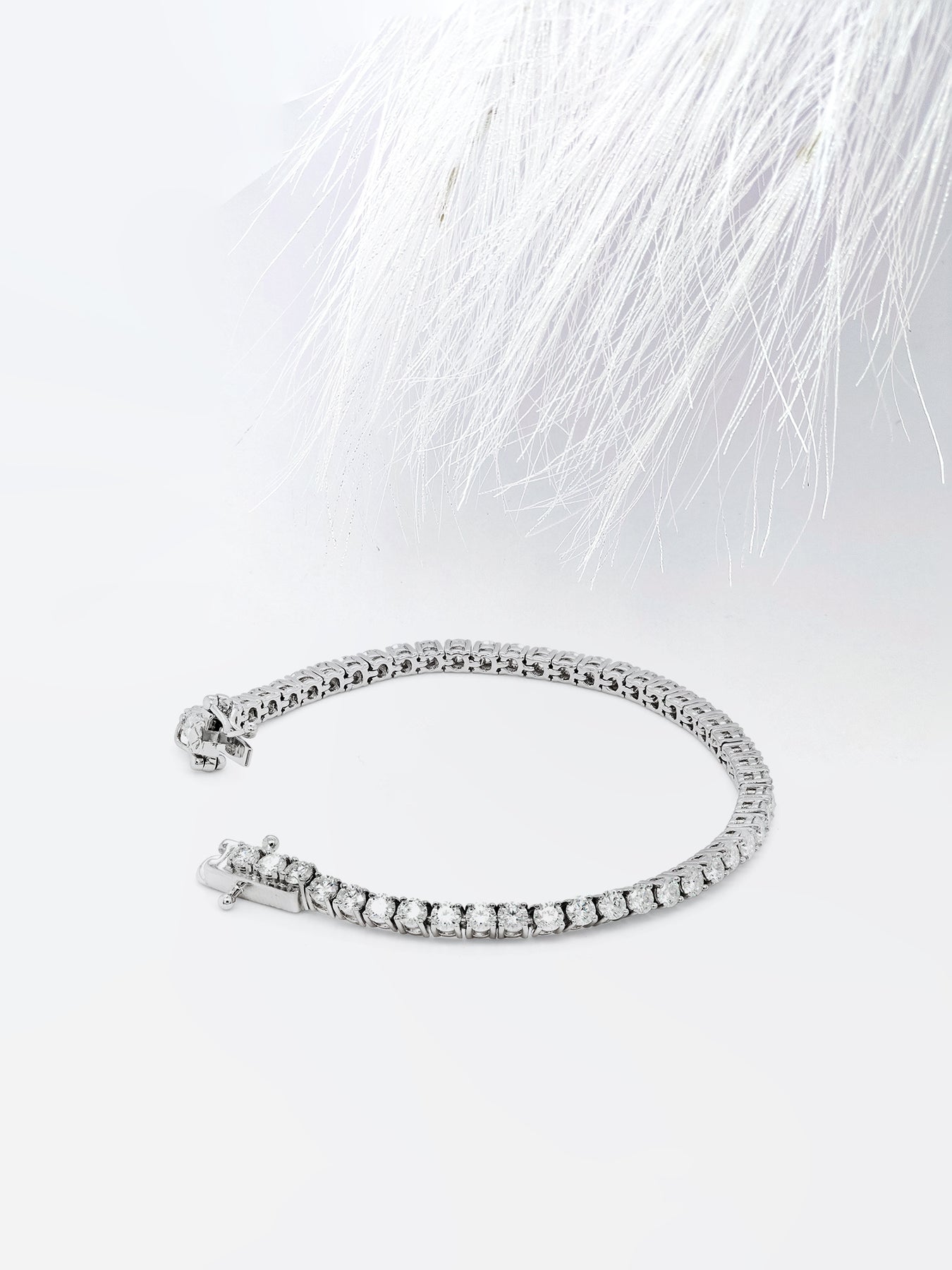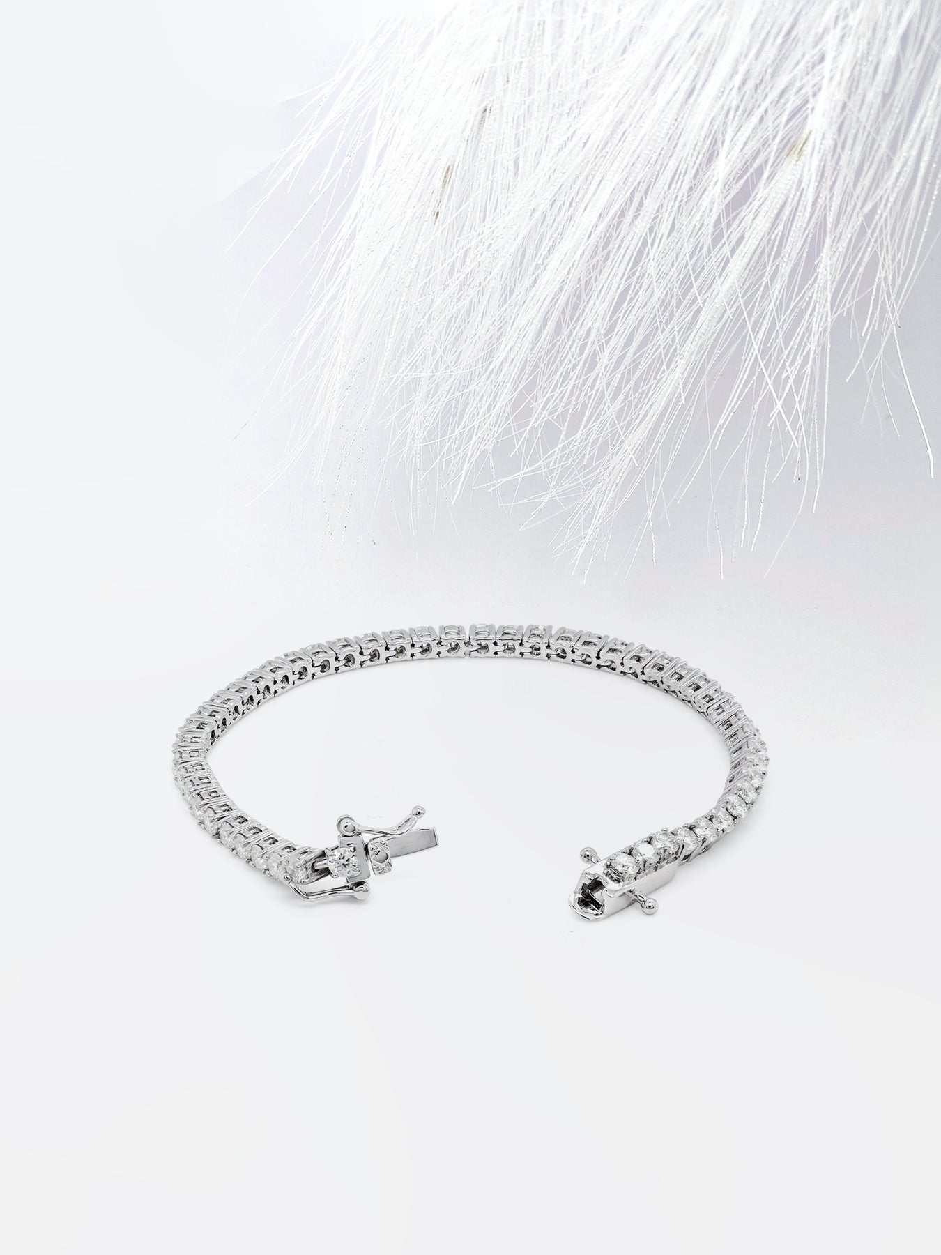 ✥ Illuminate her wrist with our dazzling 5.94 Round Cut Tennis Moissanite Diamond Bracelet for Her. Each meticulously crafted link showcases a brilliant round-cut Moissanite diamond, renowned for its captivating sparkle and brilliance. This bracelet exudes timeless elegance and sophistication, perfect for both formal occasions and everyday wear. Whether gifted to a loved one or cherished as a personal indulgence, this exquisite bracelet is sure to become a treasured symbol of luxury and style, radiating beauty and grace with every movement.