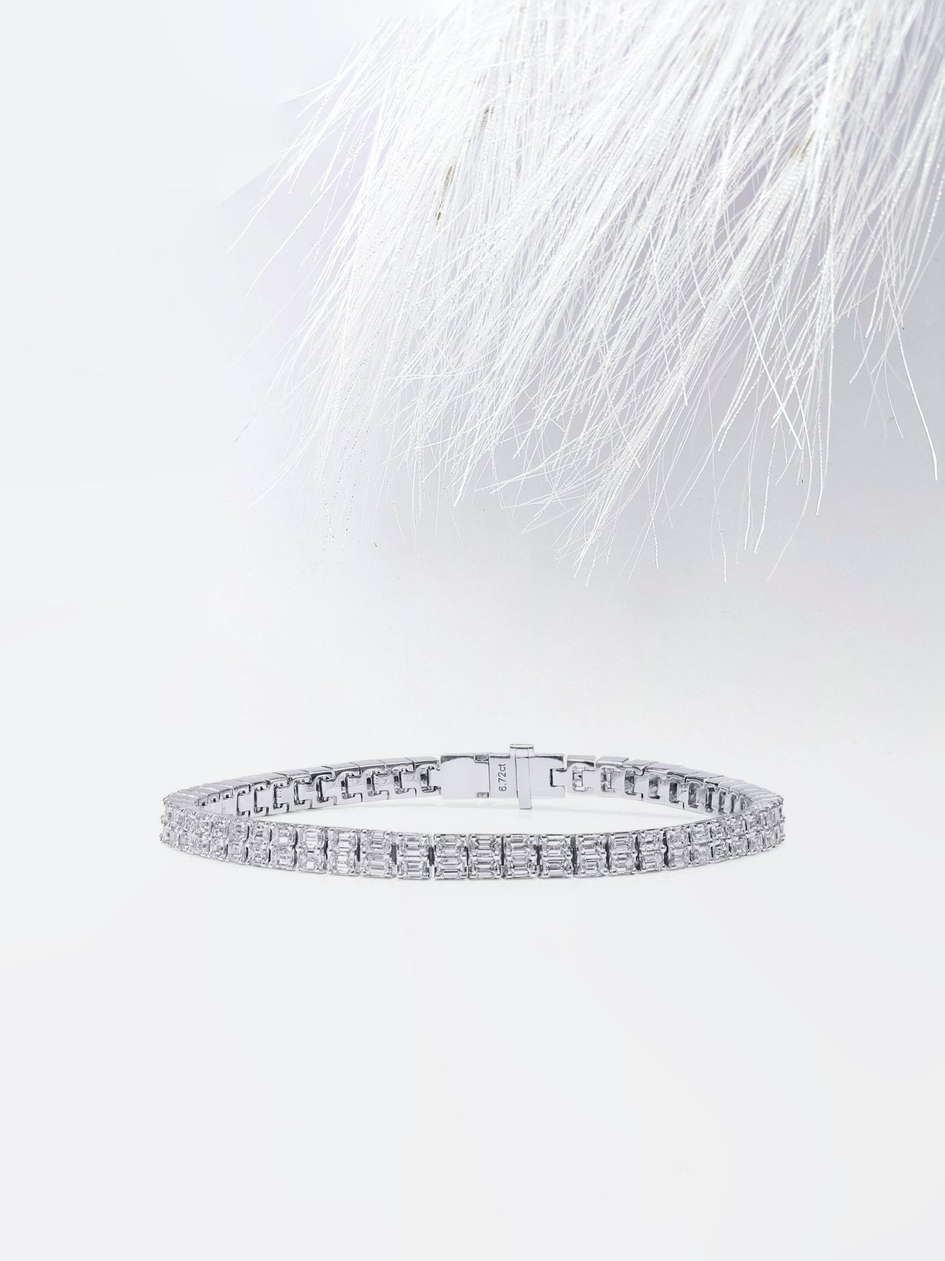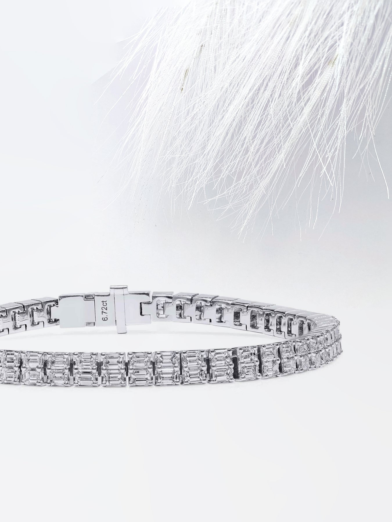 6.72ct Emerald Cut Two Row Tennis Moissanite Diamond Bracelet For Women