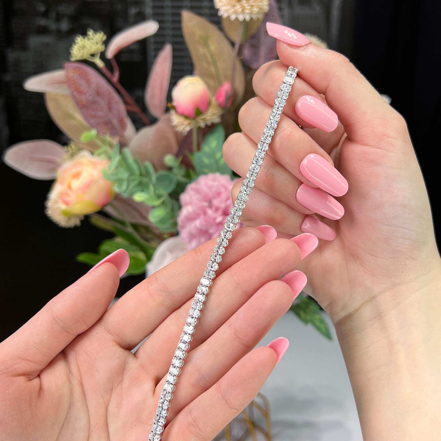 ✥ Adorn her wrist with the mesmerizing brilliance of our 9.8ct Oval Cut Tennis Moissanite Diamond Bracelet for Women. Each link of this exquisite bracelet features a stunning oval-cut Moissanite diamond, renowned for its exceptional sparkle and fire. Meticulously set in a classic tennis bracelet design, the oval-cut diamonds create a captivating display of elegance and sophistication. Whether worn as a standalone statement piece or layered with other bracelets for a personalized look, this bracelet adds a touch of glamour to any ensemble. Perfect for both formal occasions and everyday wear, it's a timeless addition to any jewelry collection. Whether gifted to a loved one or as a well-deserved indulgence for oneself, this exquisite bracelet is sure to be cherished for its beauty and grace.