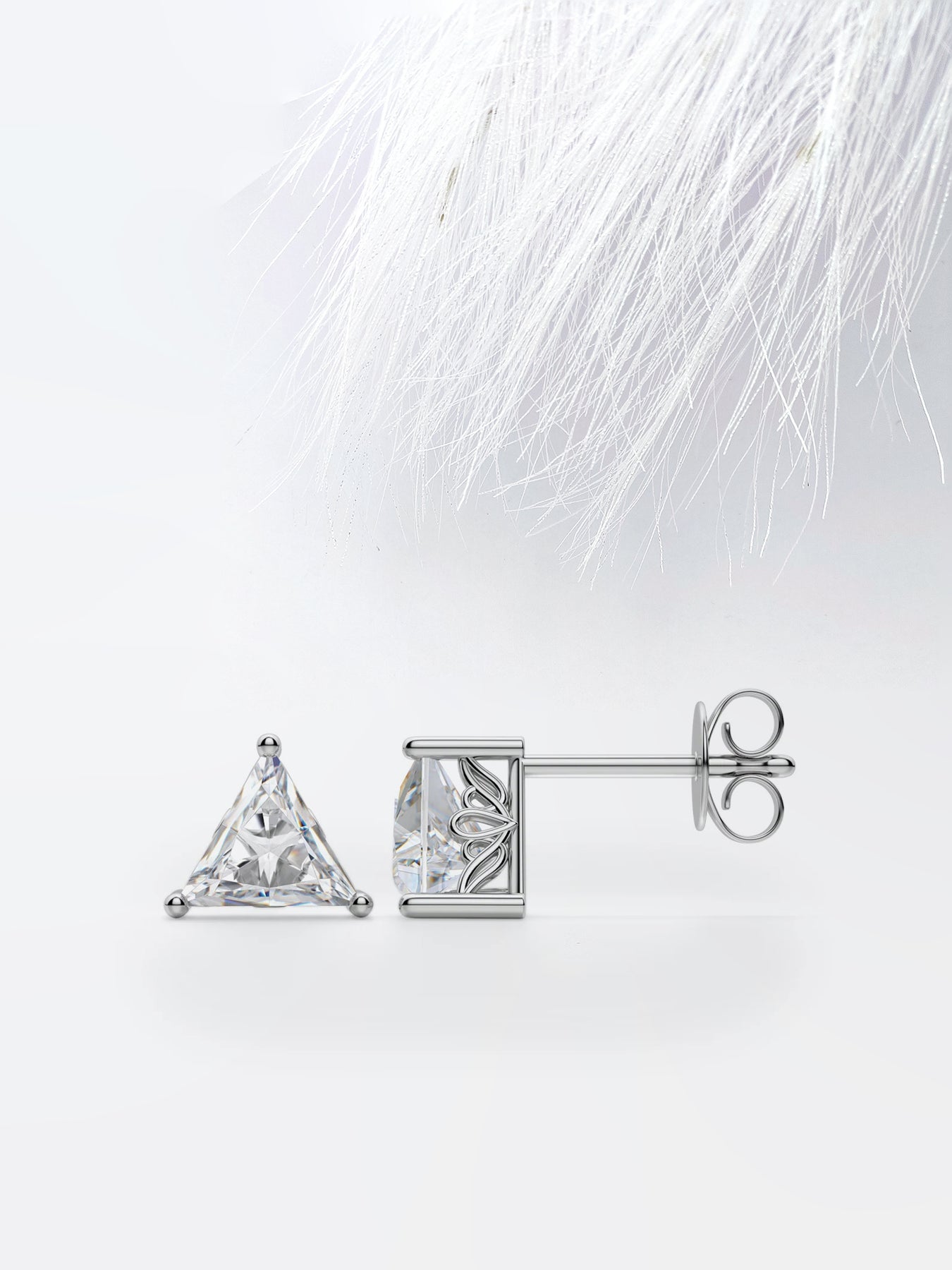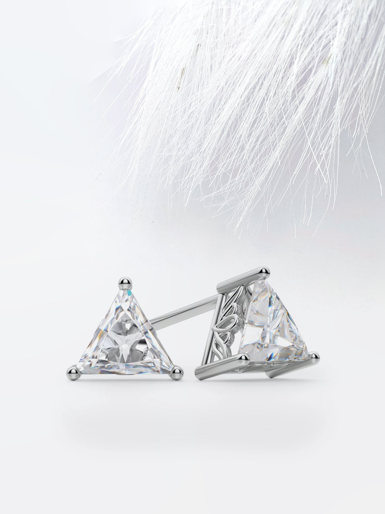 ✥ Introducing our 1.0CT Triangle Cut Stud Moissanite Diamond Earrings for Women, a chic and contemporary addition to your jewelry collection. Each earring features a dazzling 1.0 carat triangle-cut Moissanite stone delicately set in a classic stud design, radiating brilliance and sophistication. The unique triangular shape of the cut adds a modern twist to these earrings, making them a stylish choice for any occasion. Crafted with ethically sourced Moissanite stones and diamonds, renowned for their exceptional sparkle and durability, these earrings offer a sustainable and eco-friendly alternative to traditional diamonds. Elevate your look with these exquisite Triangle Cut Stud Moissanite Diamond Earrings, and adorn yourself with beauty and elegance that sets you apart from the crowd.