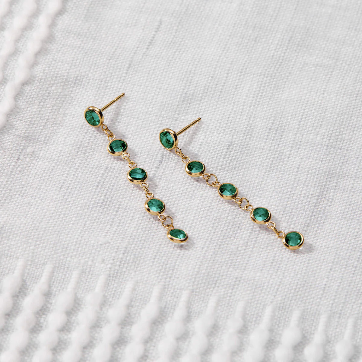 5.04TCW Round Cut Emerald Moissanite May Birthstone Dangle Earrings