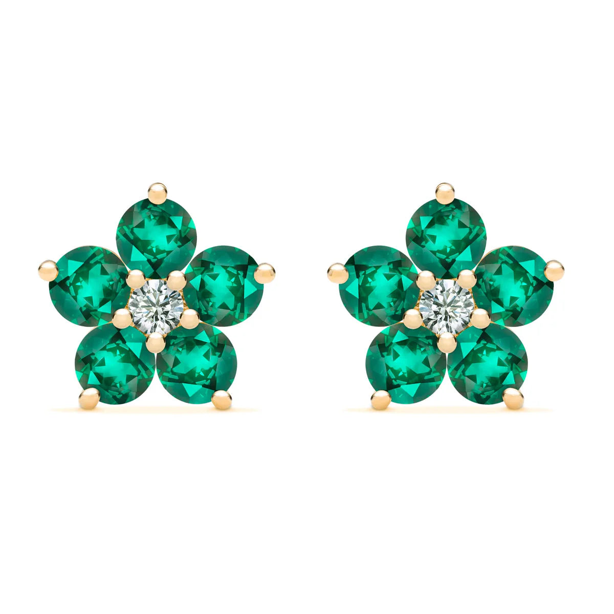 2.50TCW Round Floral Emerald Moissanite May Birthstone Stud Earrings