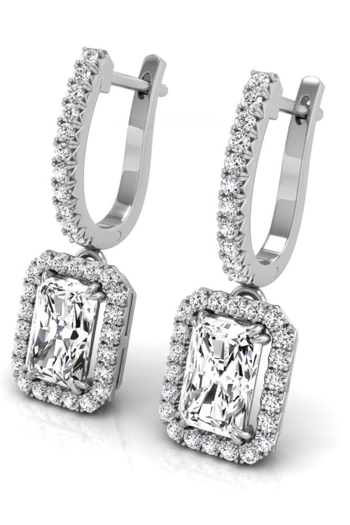 2.56CT Radiant Cut Halo Moissanite Diamond Earrings For Women