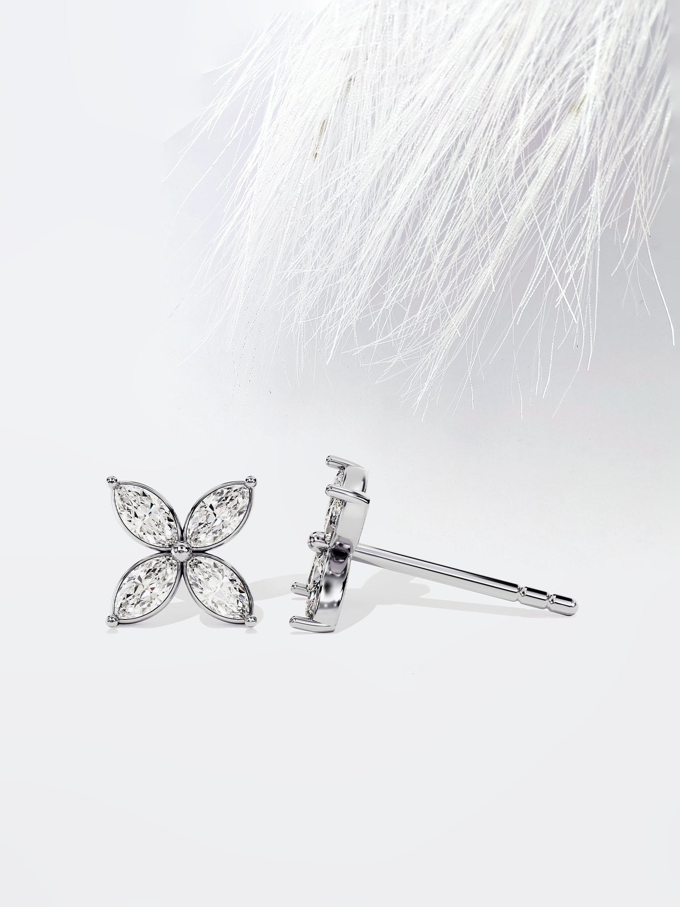 Marquise Cut Clover Moissanite Stud Diamond Earrings For Women