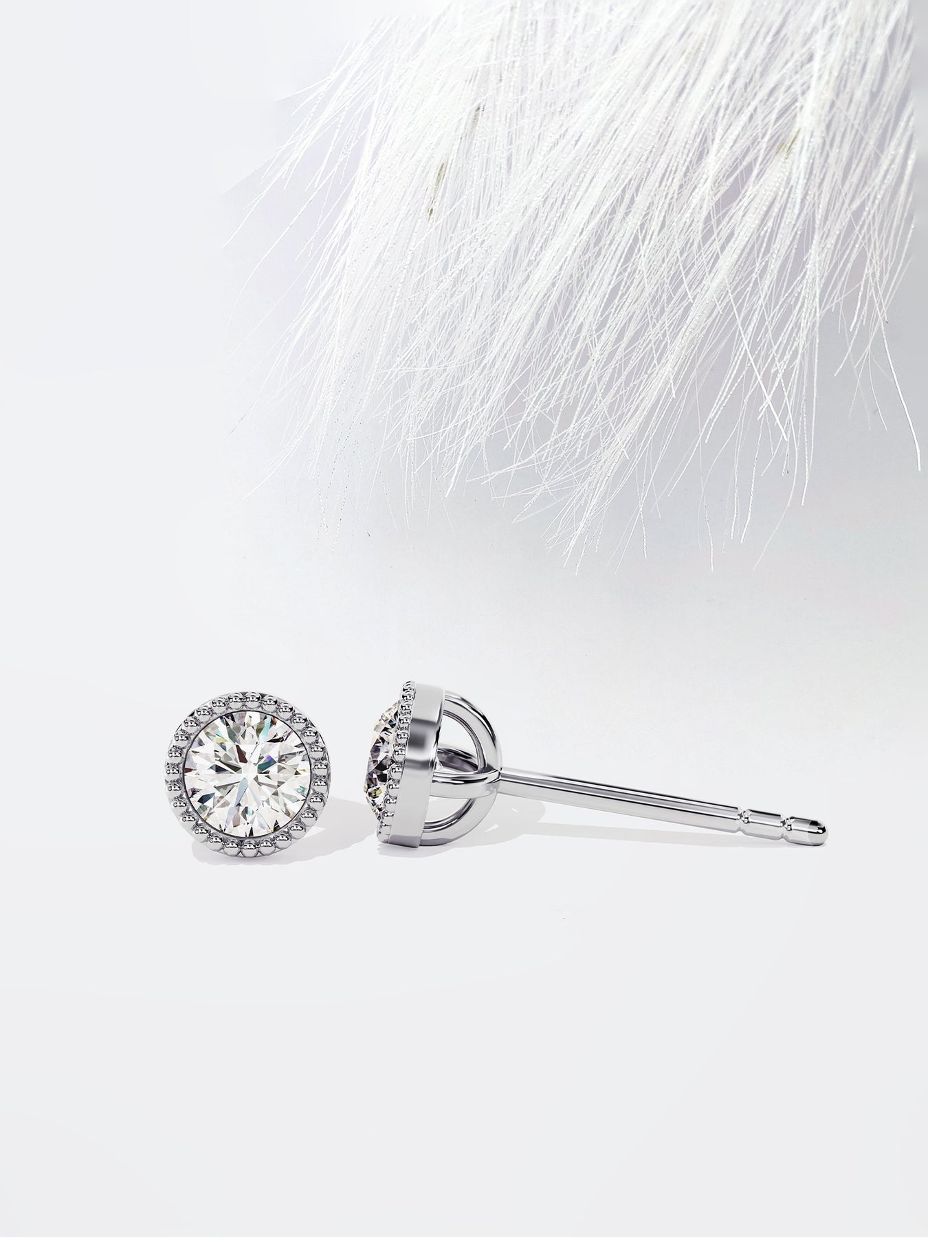 Round Cut Bezel Set Moissanite Stud Diamond Earrings For Women