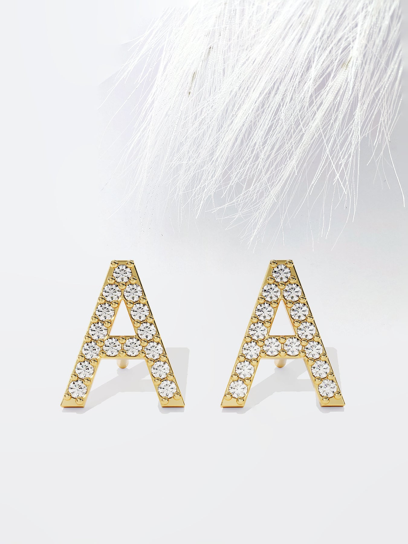 Round Cut Letter Moissanite Stud Diamond Earrings For Women