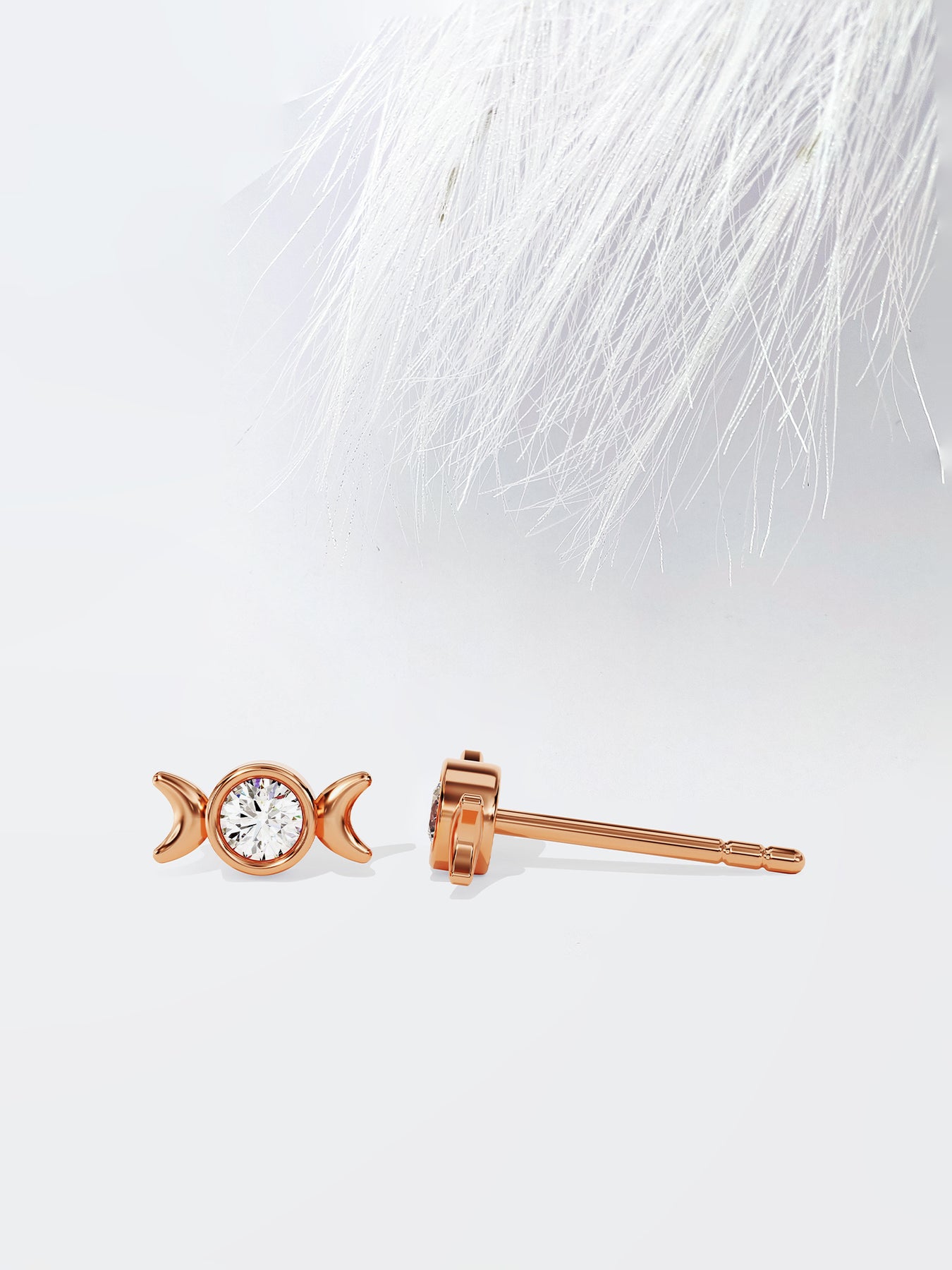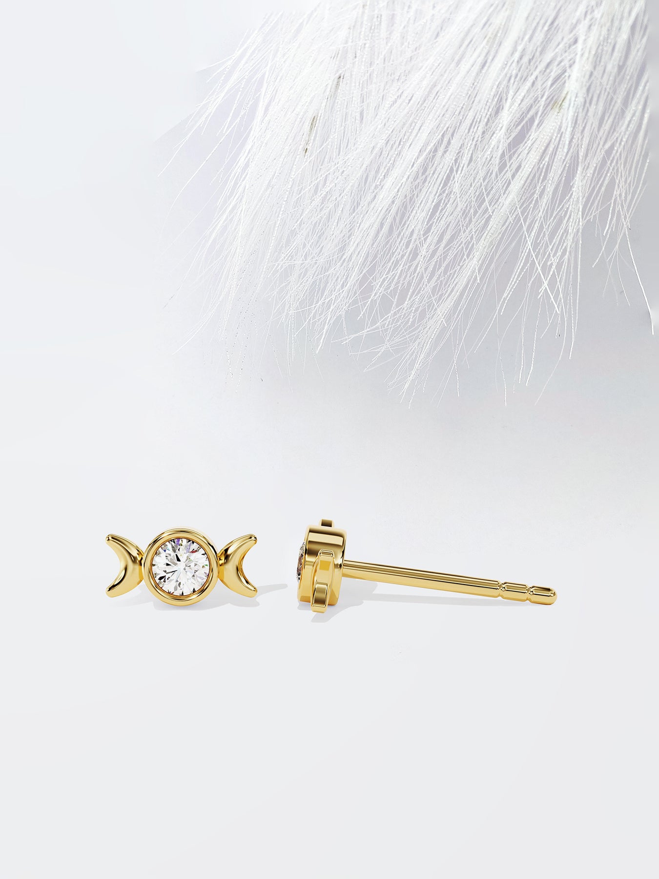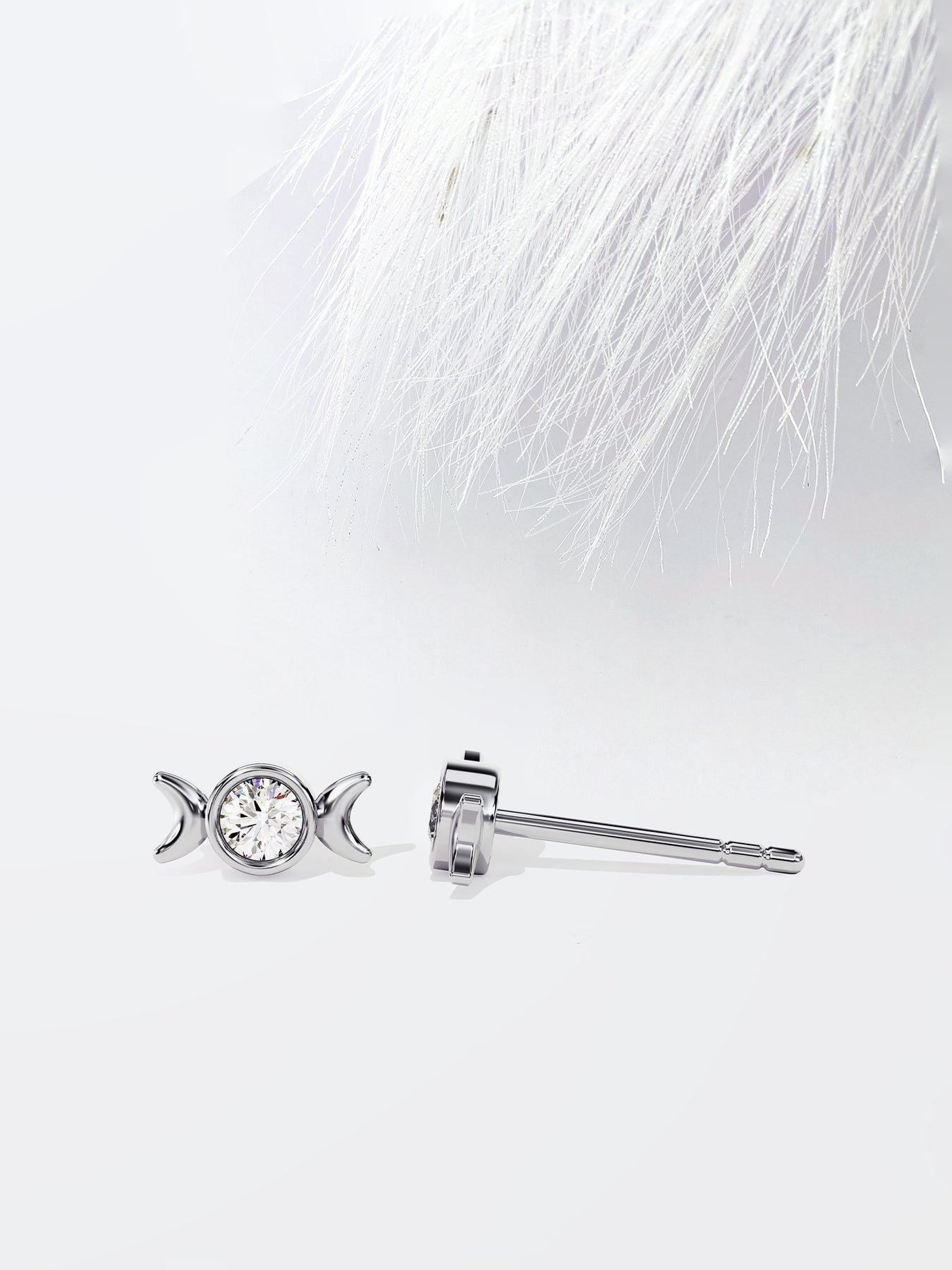 Round Cut Phases of the Moon Moissanite Stud Diamond Earrings For Women