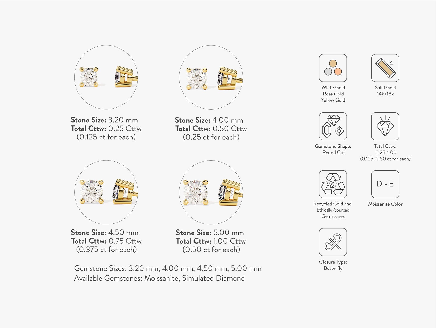 Round Cut Solitaire Moissanite Stud Diamond Earrings For Women
