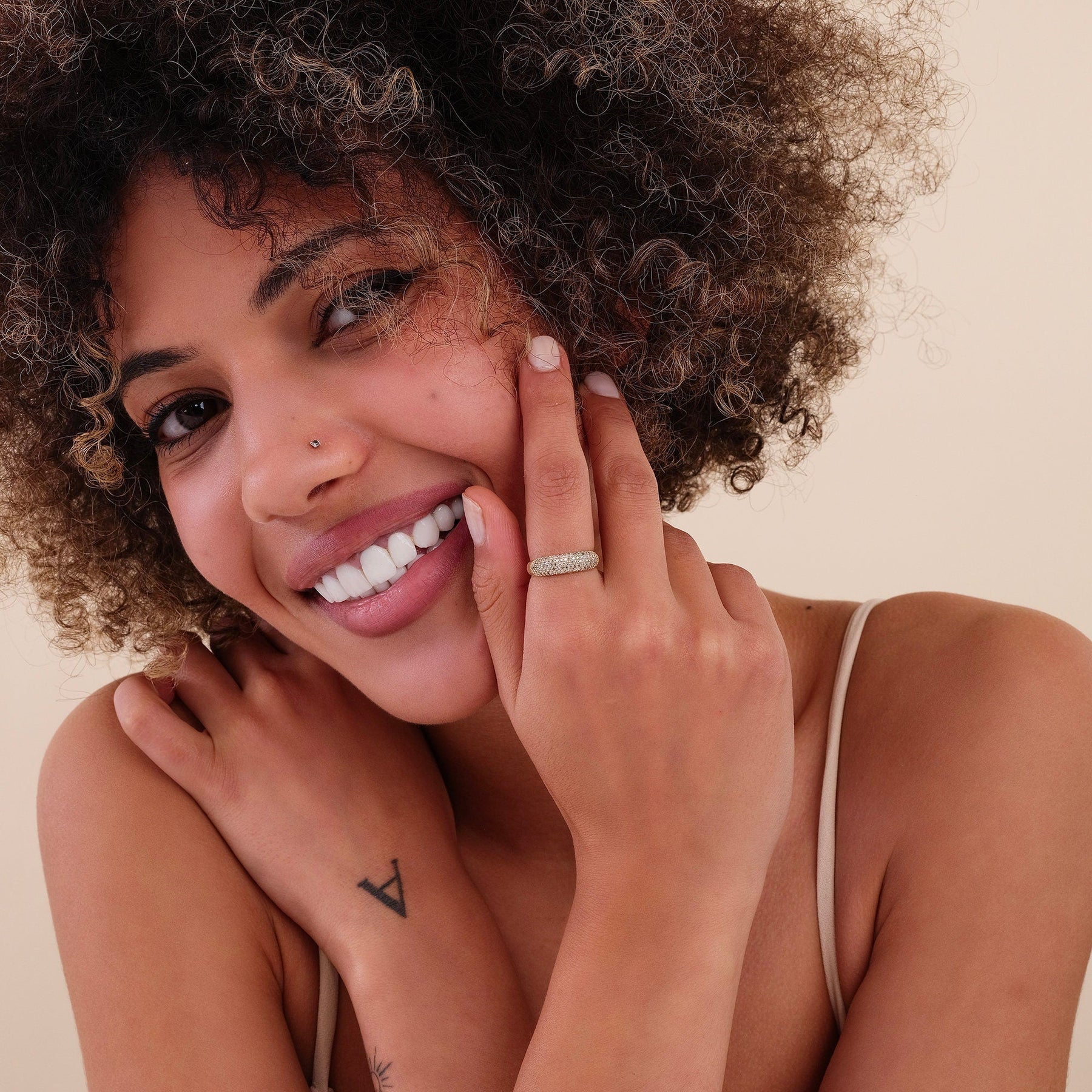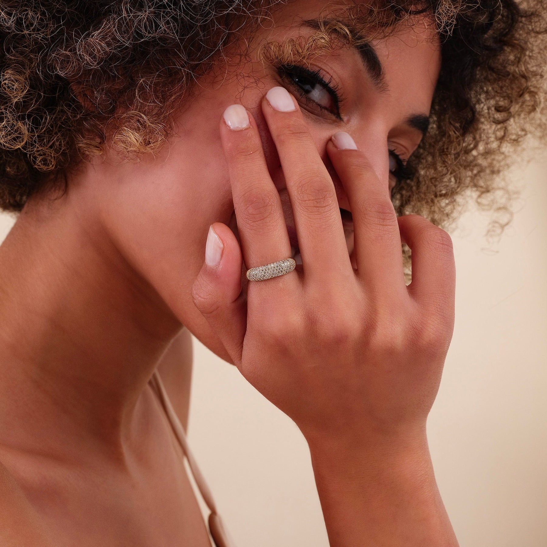 Round Cut Diamond Brushed Solid Gold Cigar Band Women