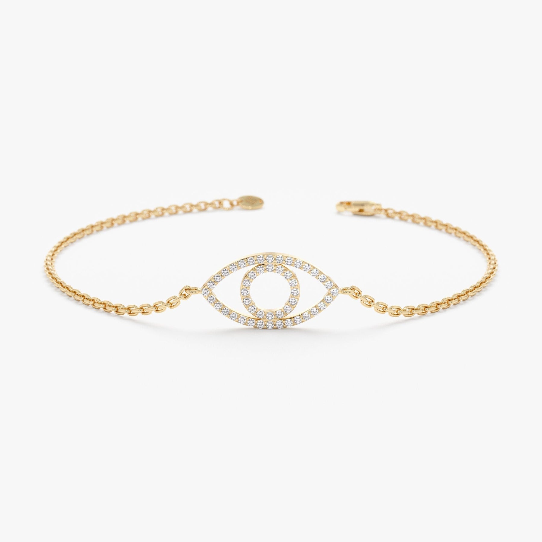 Round Cut Diamond Evil Eye Bracelet for Her Gift