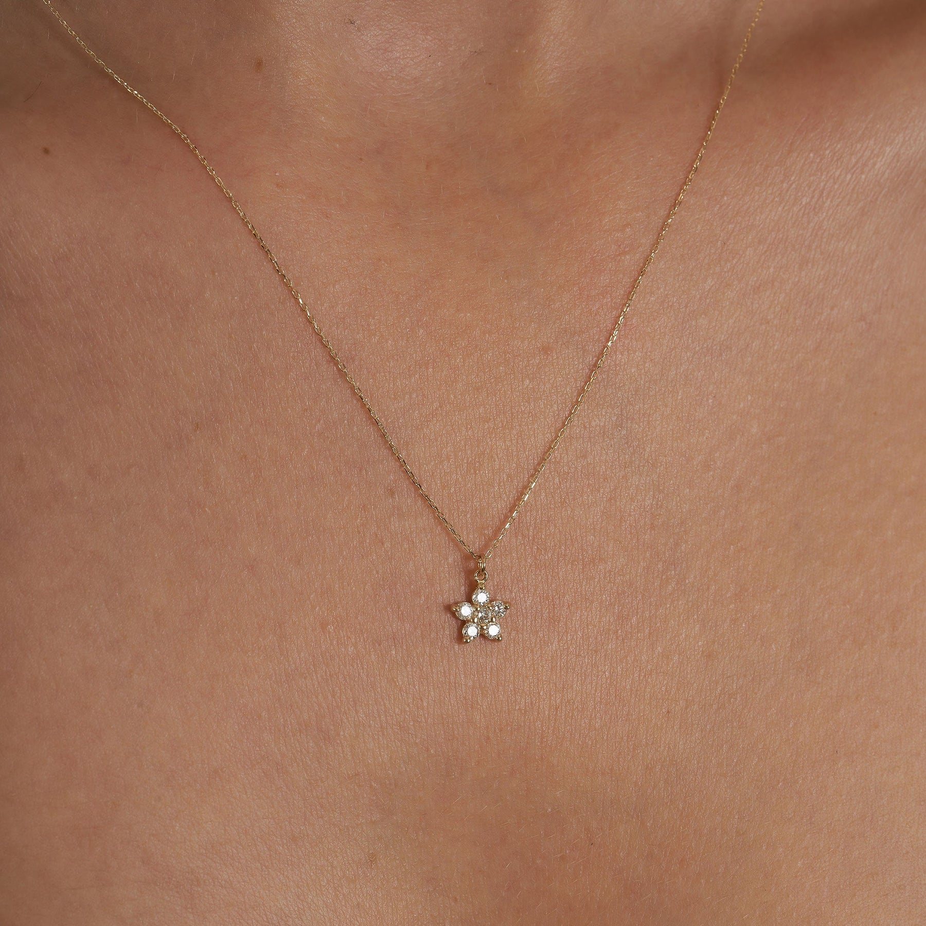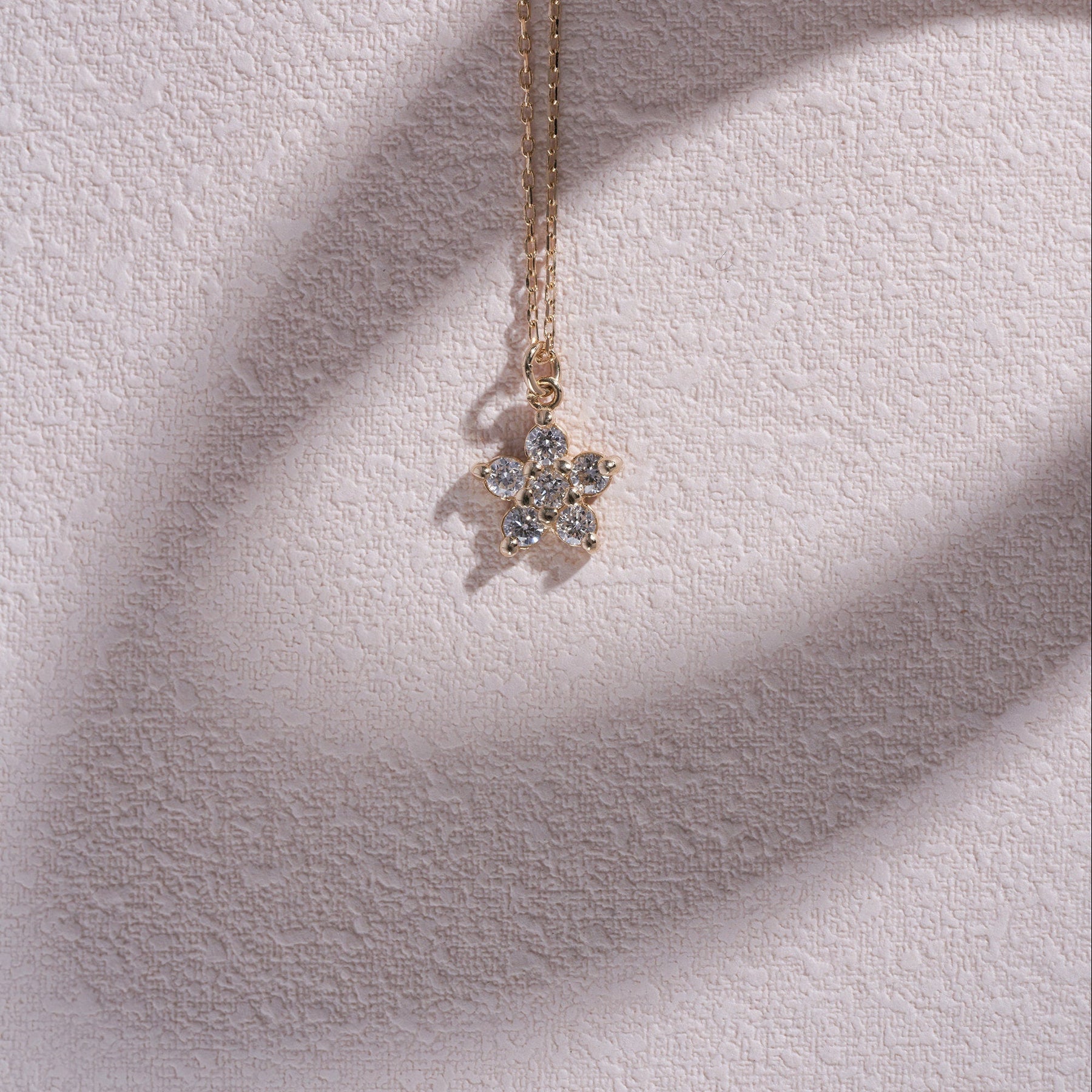 Round Cut Diamond Flower Necklace 14K Gold Ring for Her