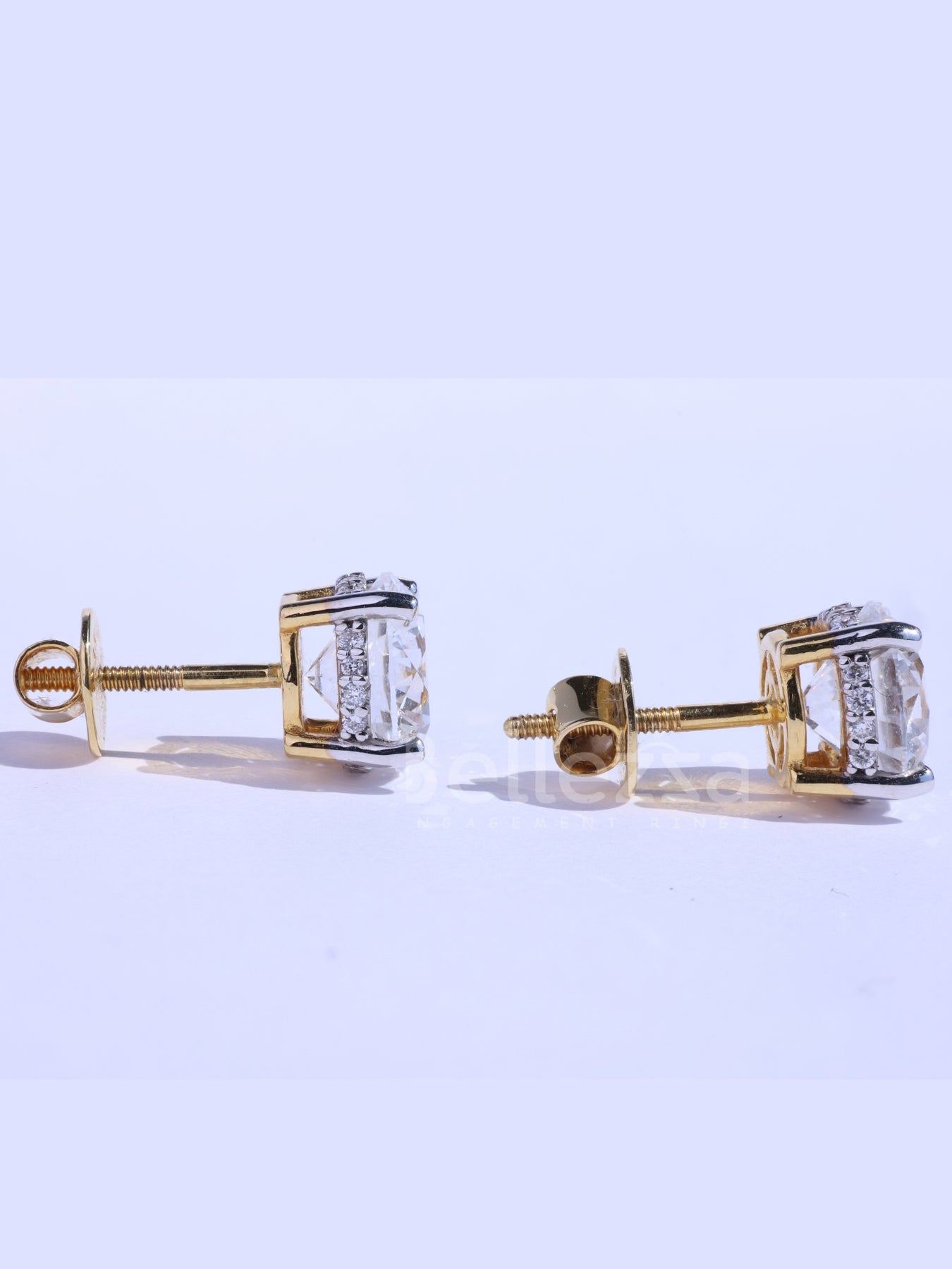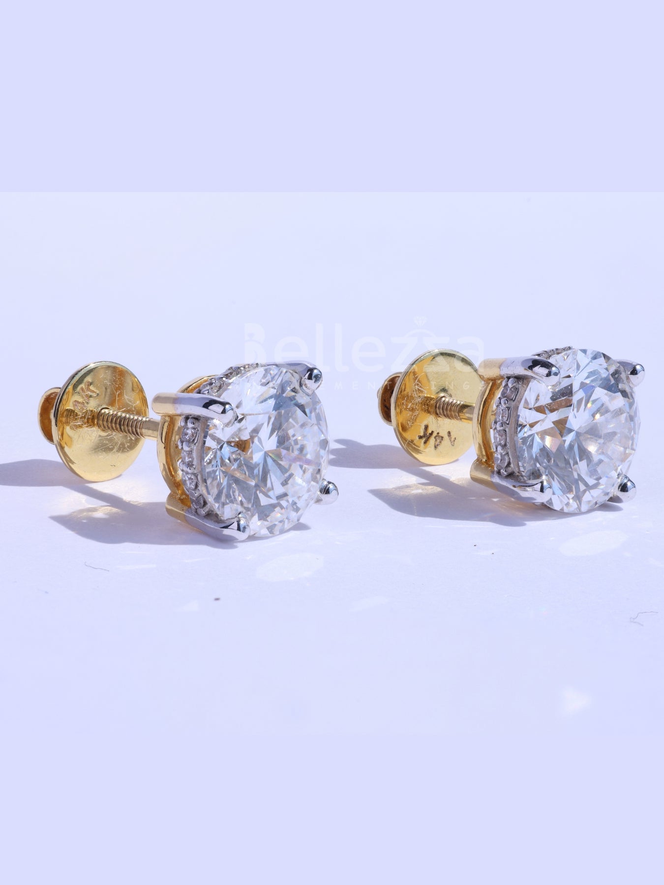 Round Cut Diamond Hidden Halo Moissanite Stud Earrings
