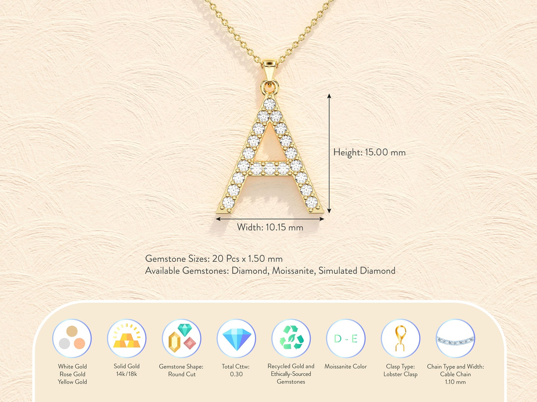 Alphabet Letter Moissanite Diamond Necklace for Women