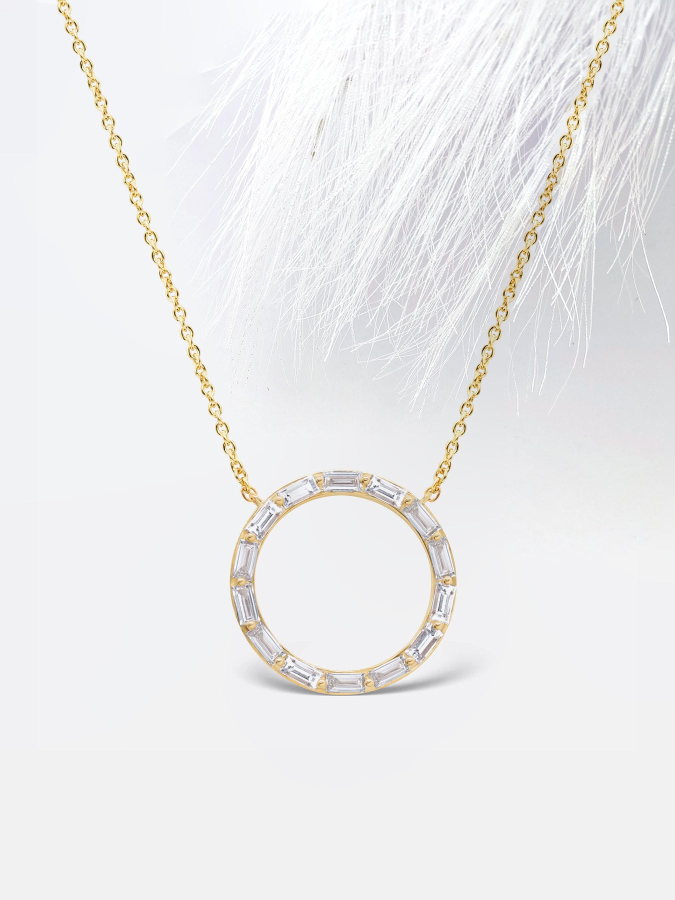 Diamond Moissanite Baguette Circle Necklace (Large) For Women