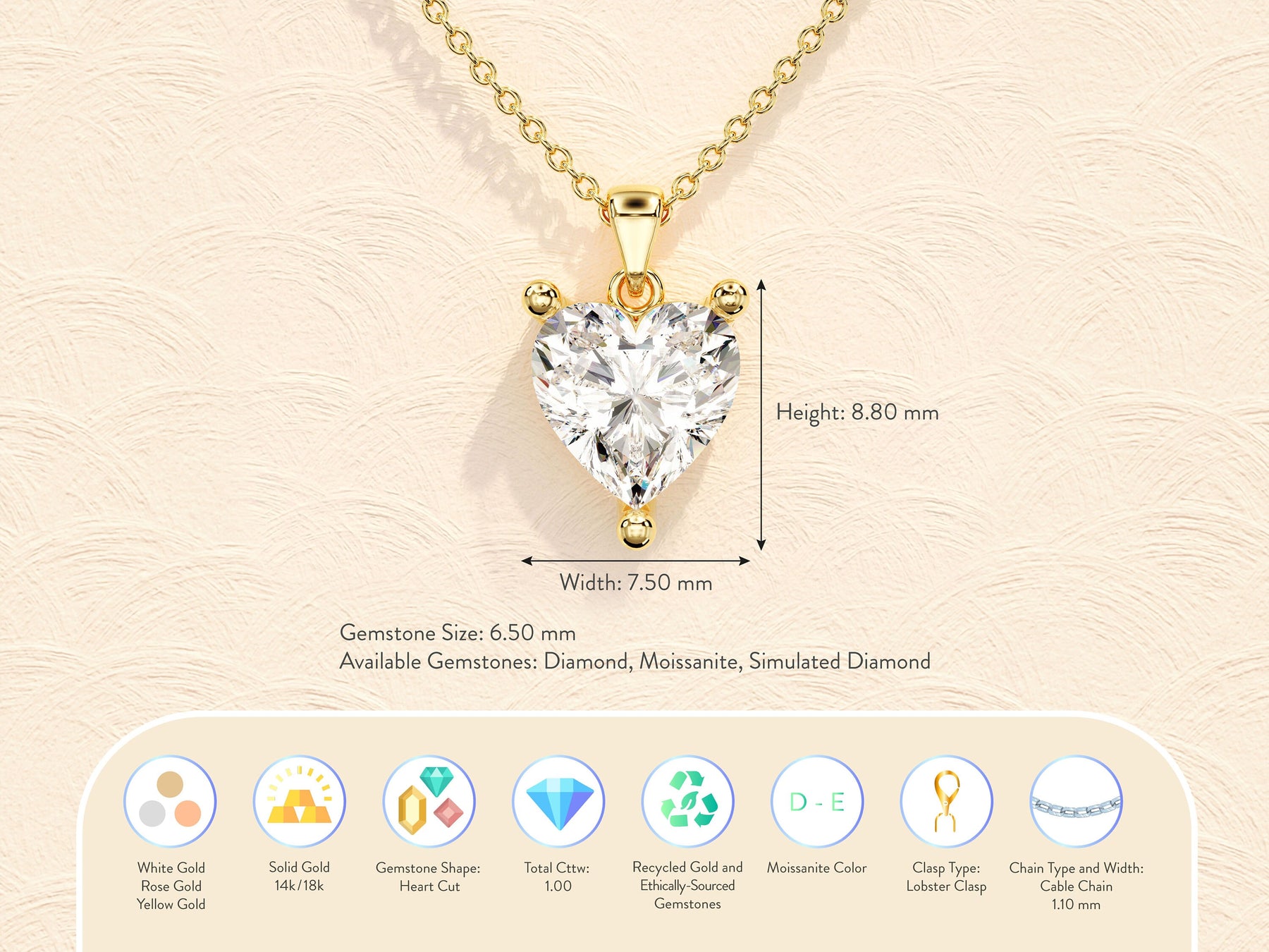 Heart Cut Diamond Moissanite Solitaire Necklace for Women