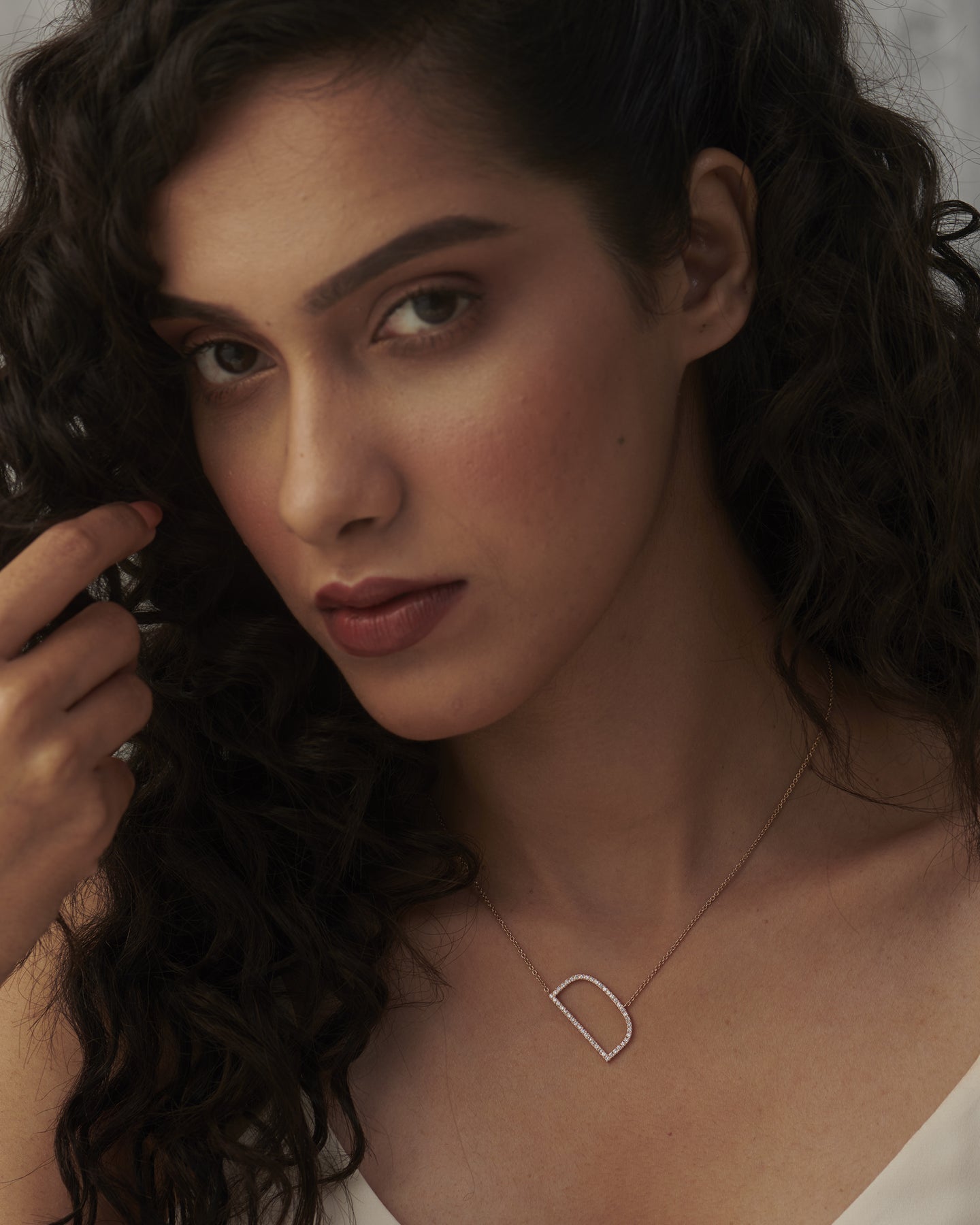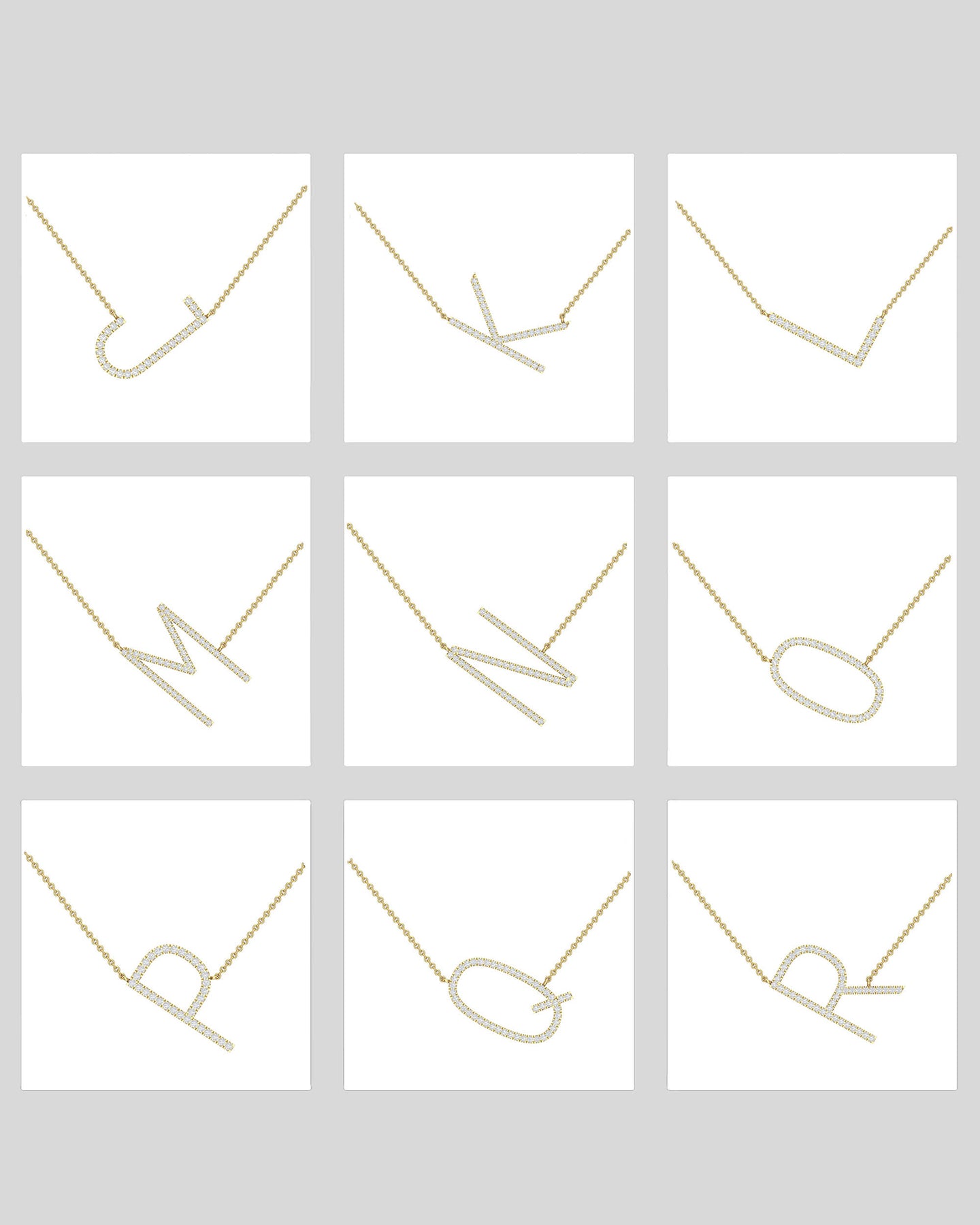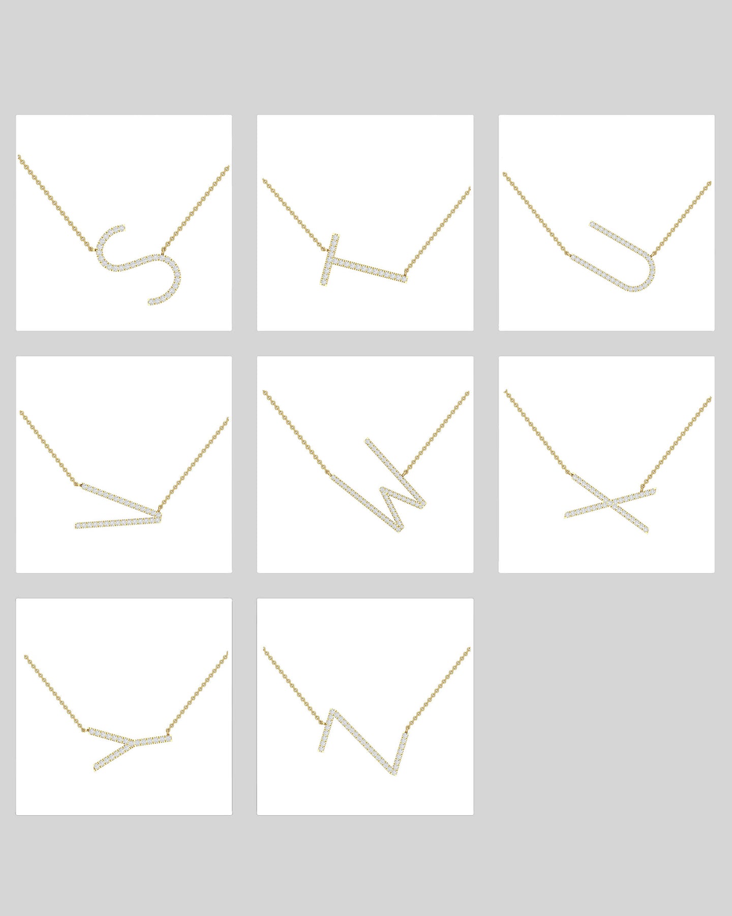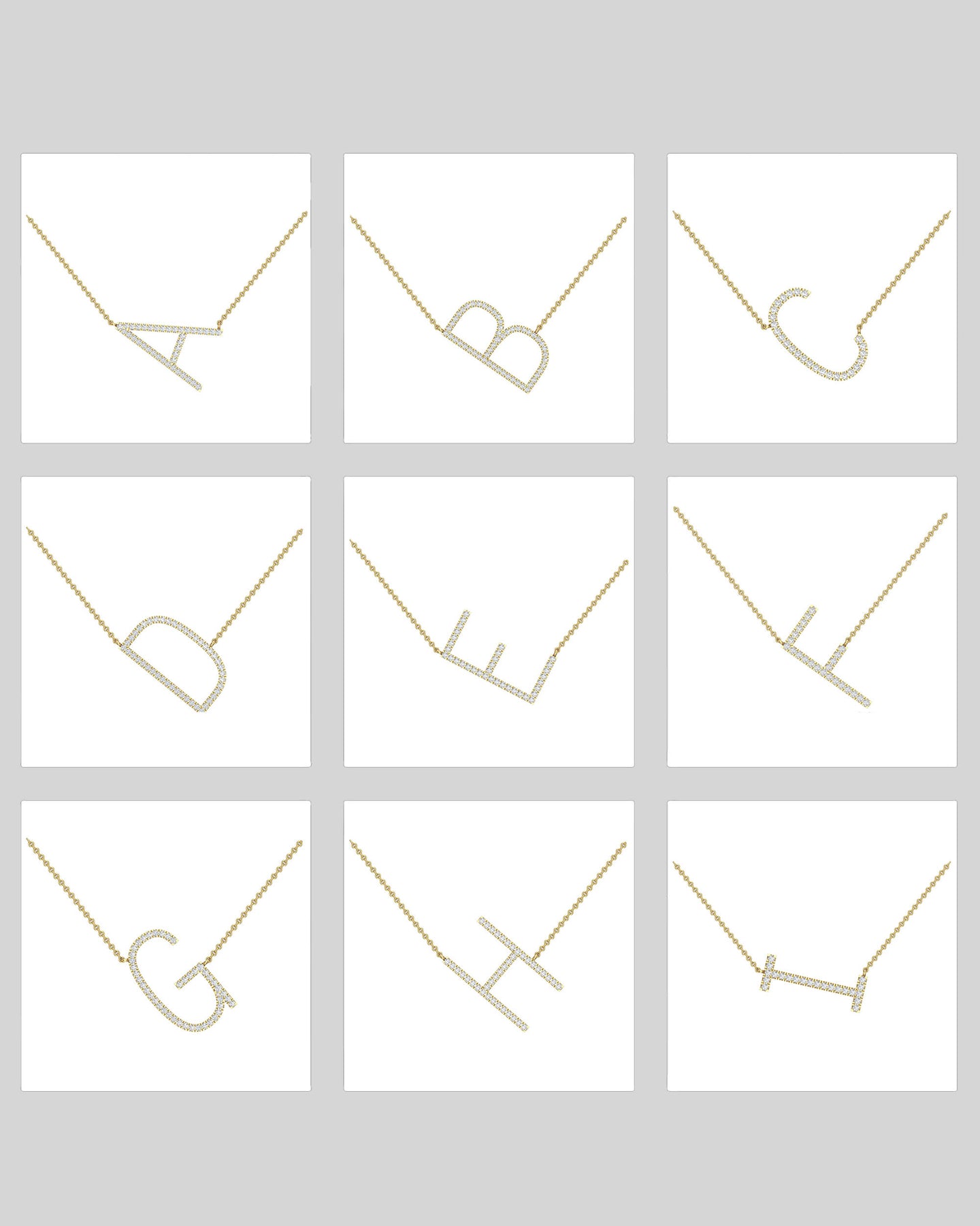 Round Cut Diamond Moissanite Sideways Initial Necklace