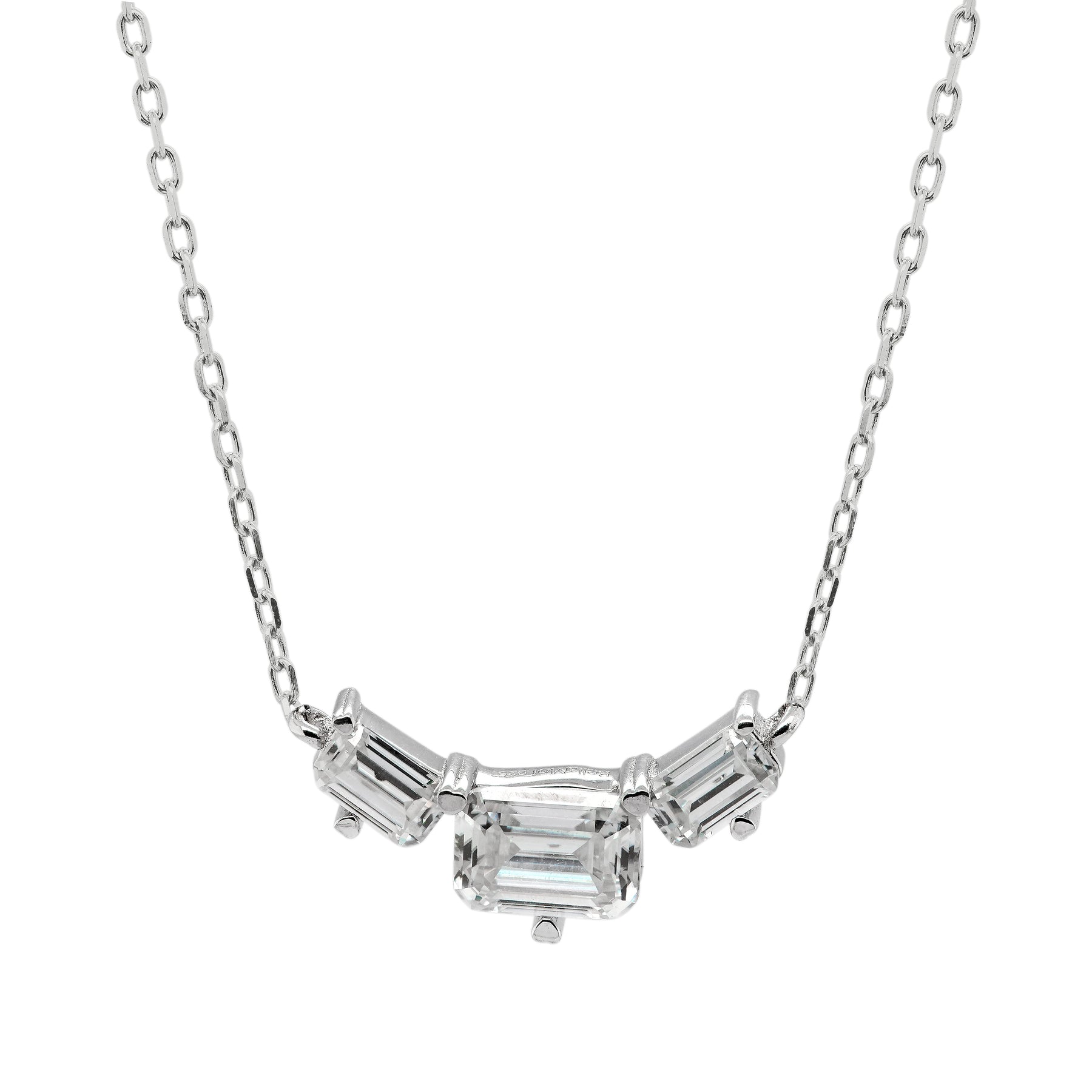 Three Stone Emerald Cut Diamond Moissanite Necklace
