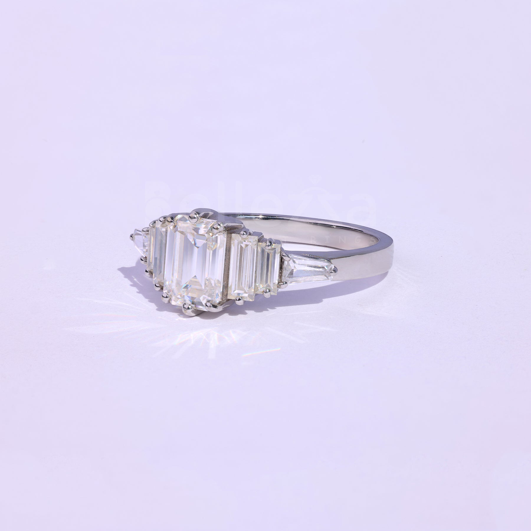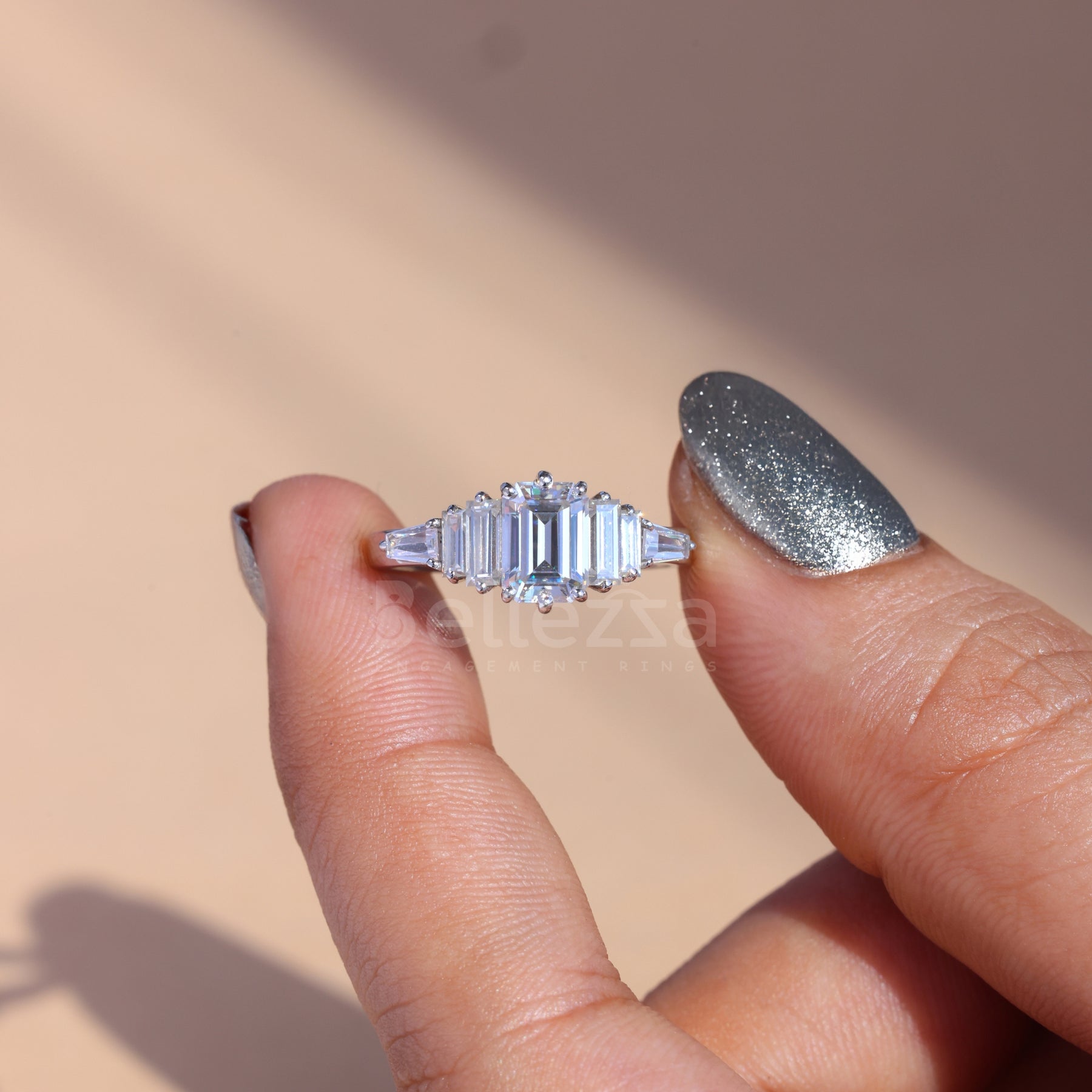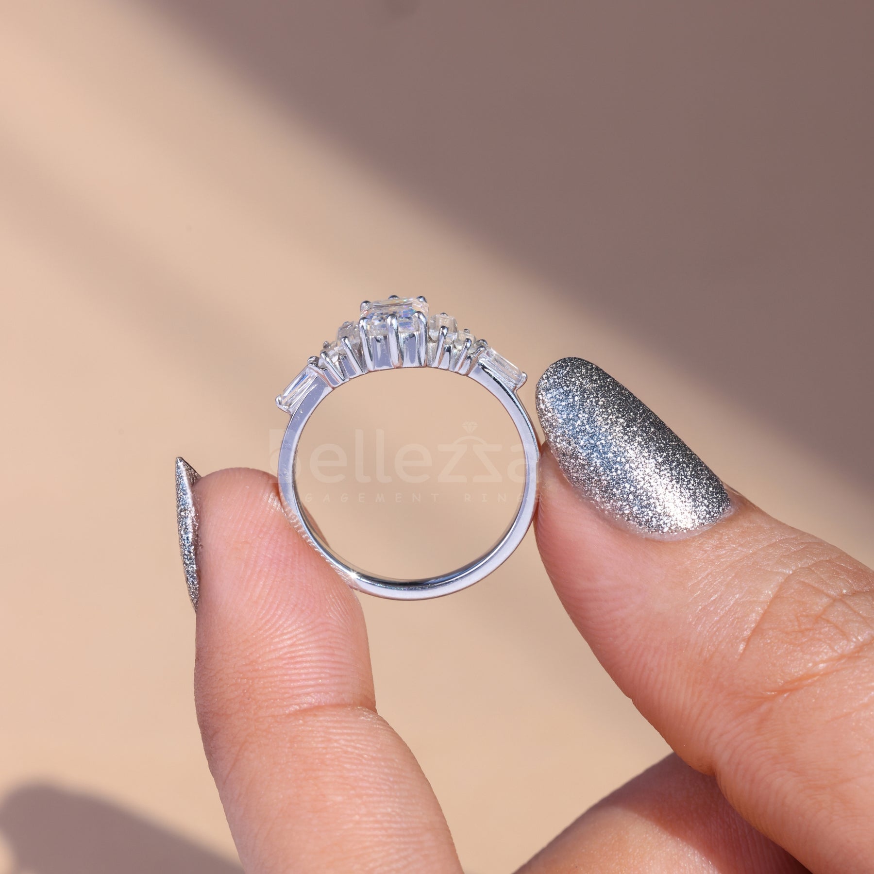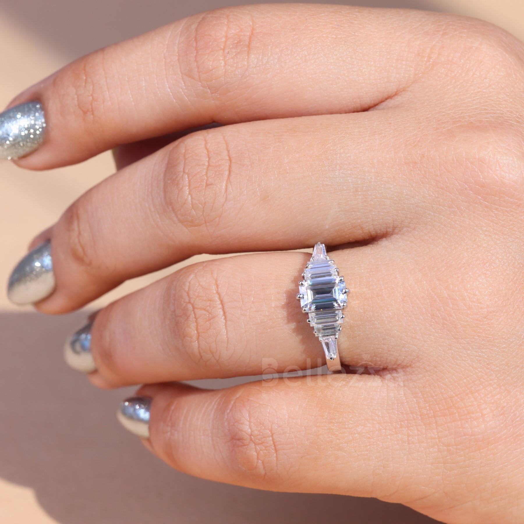 1.0CT Emerald Cut Cluster Moissanite Engagement Ring - Ready to ship