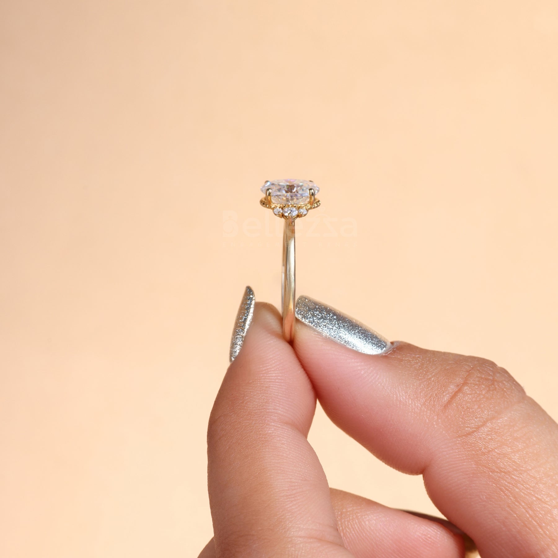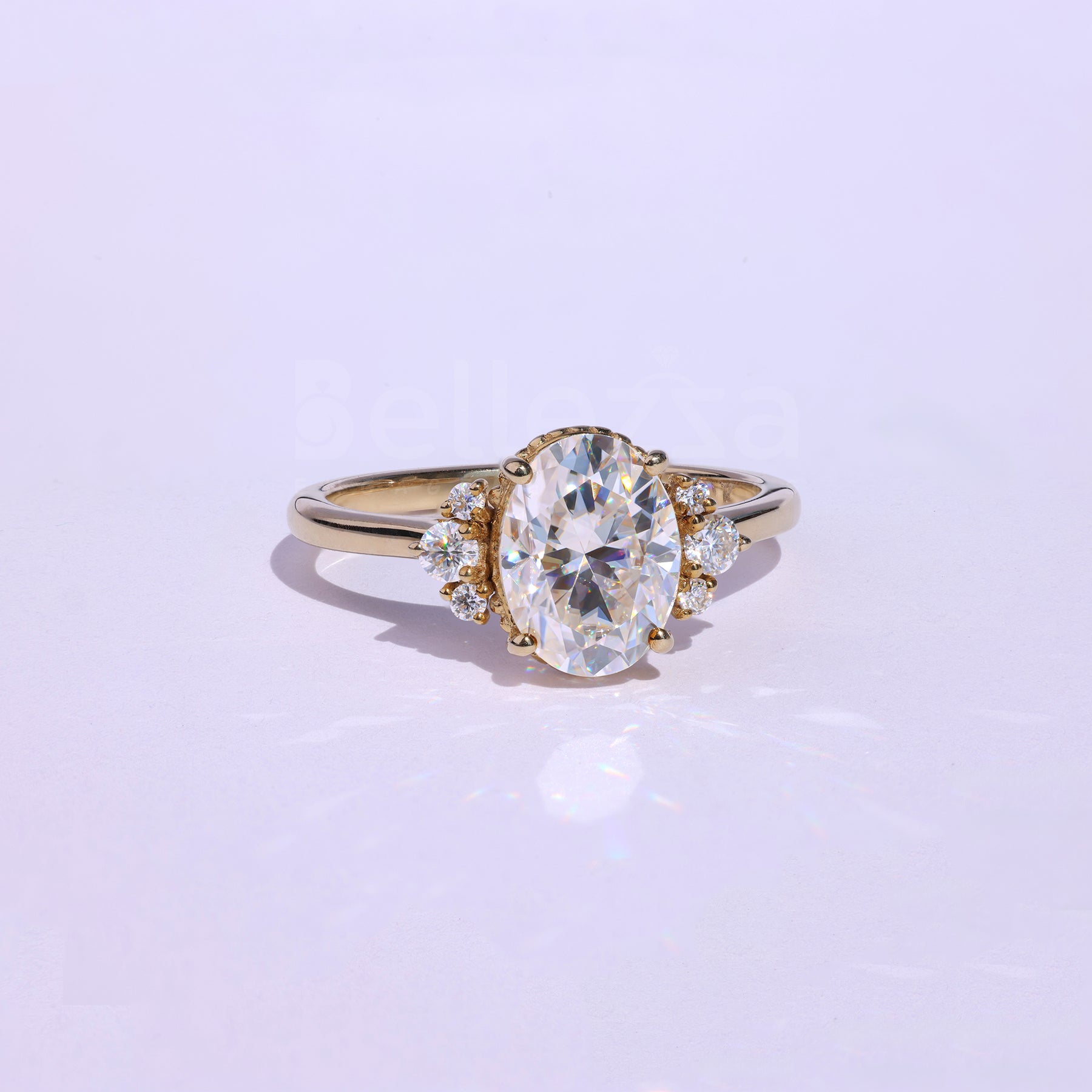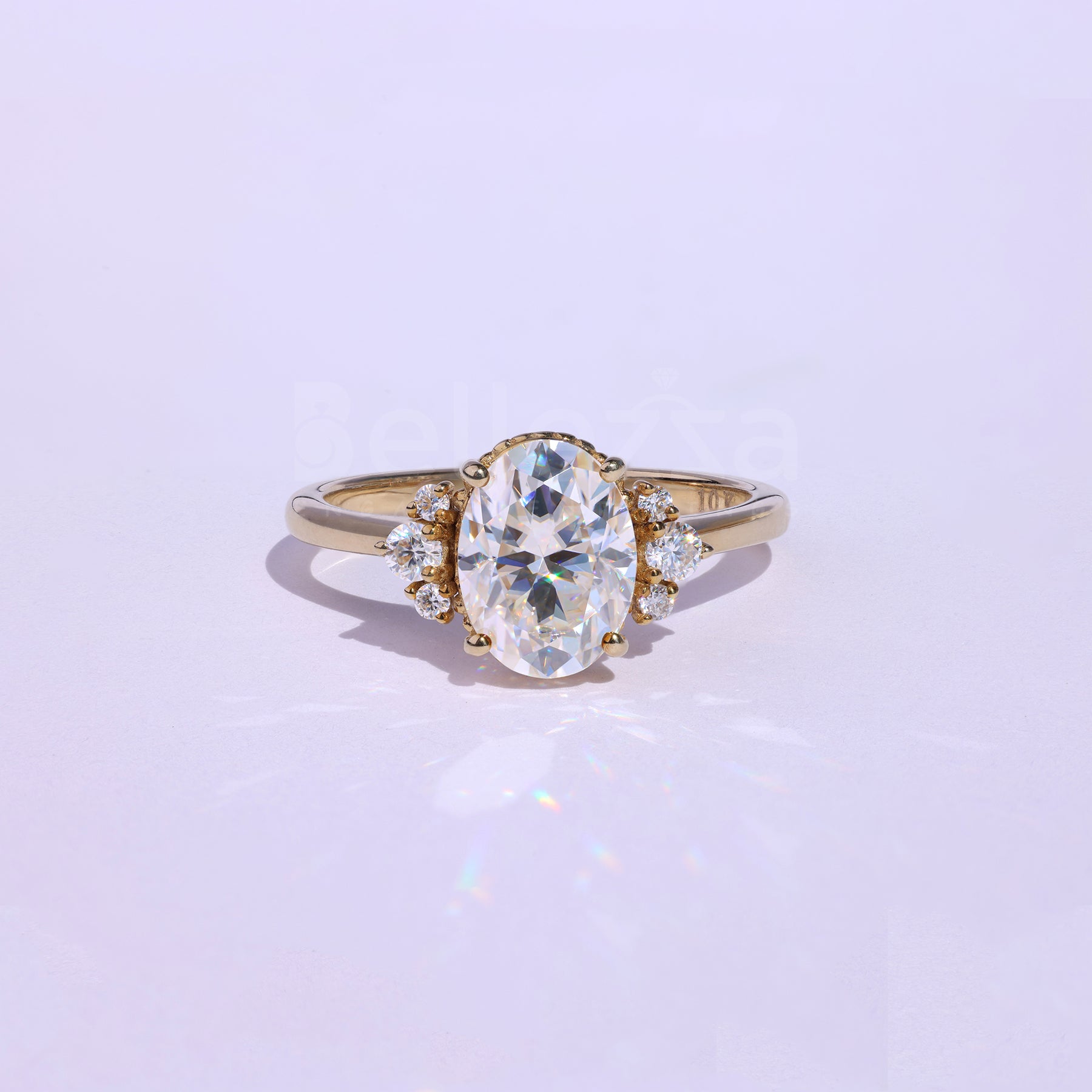 1.0CT Oval Cut Cluster Moissanite Engagement Ring - Ready to Ship