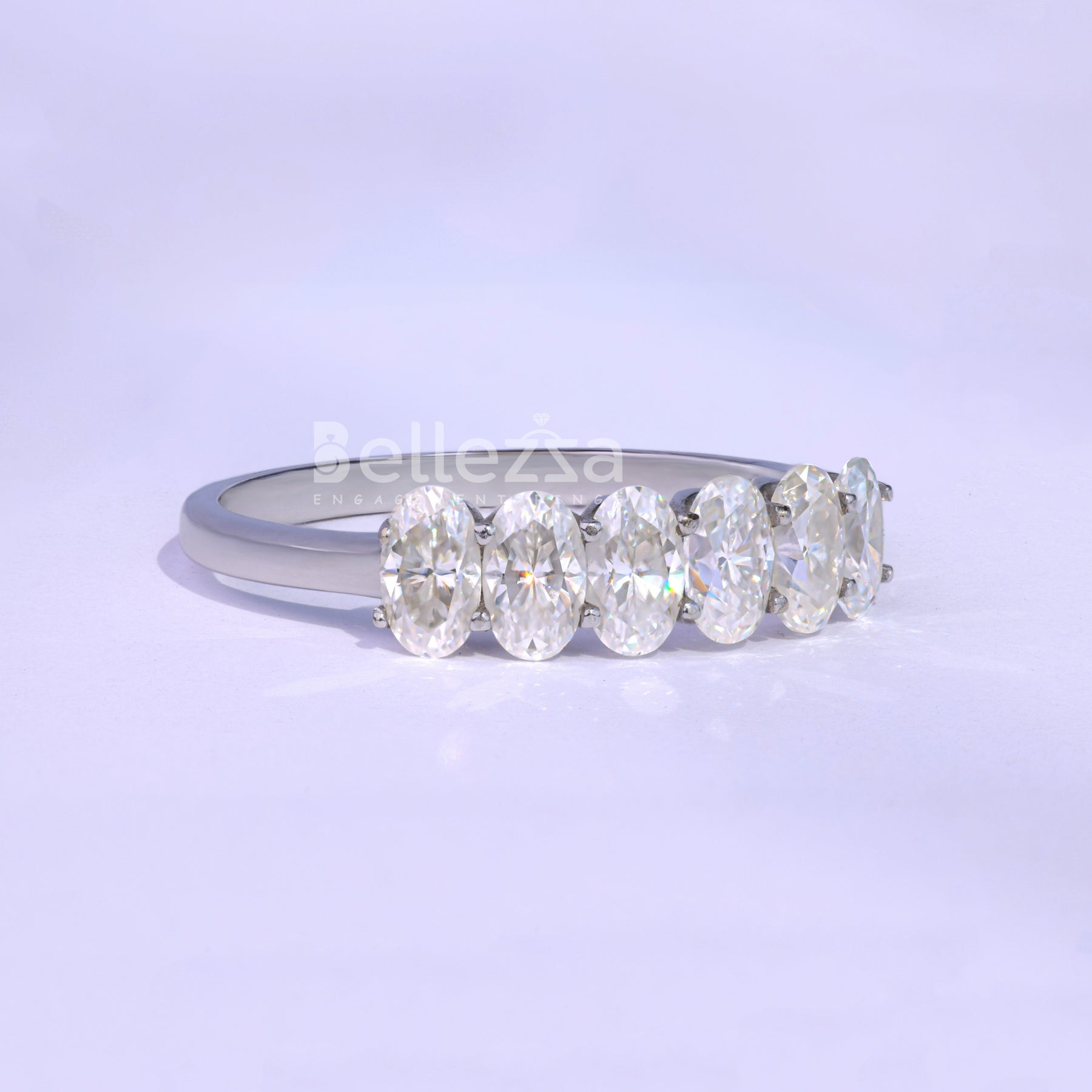 1.20TCW Oval Cut Six Diamond Moissanite Wedding Band - Ready To Ship