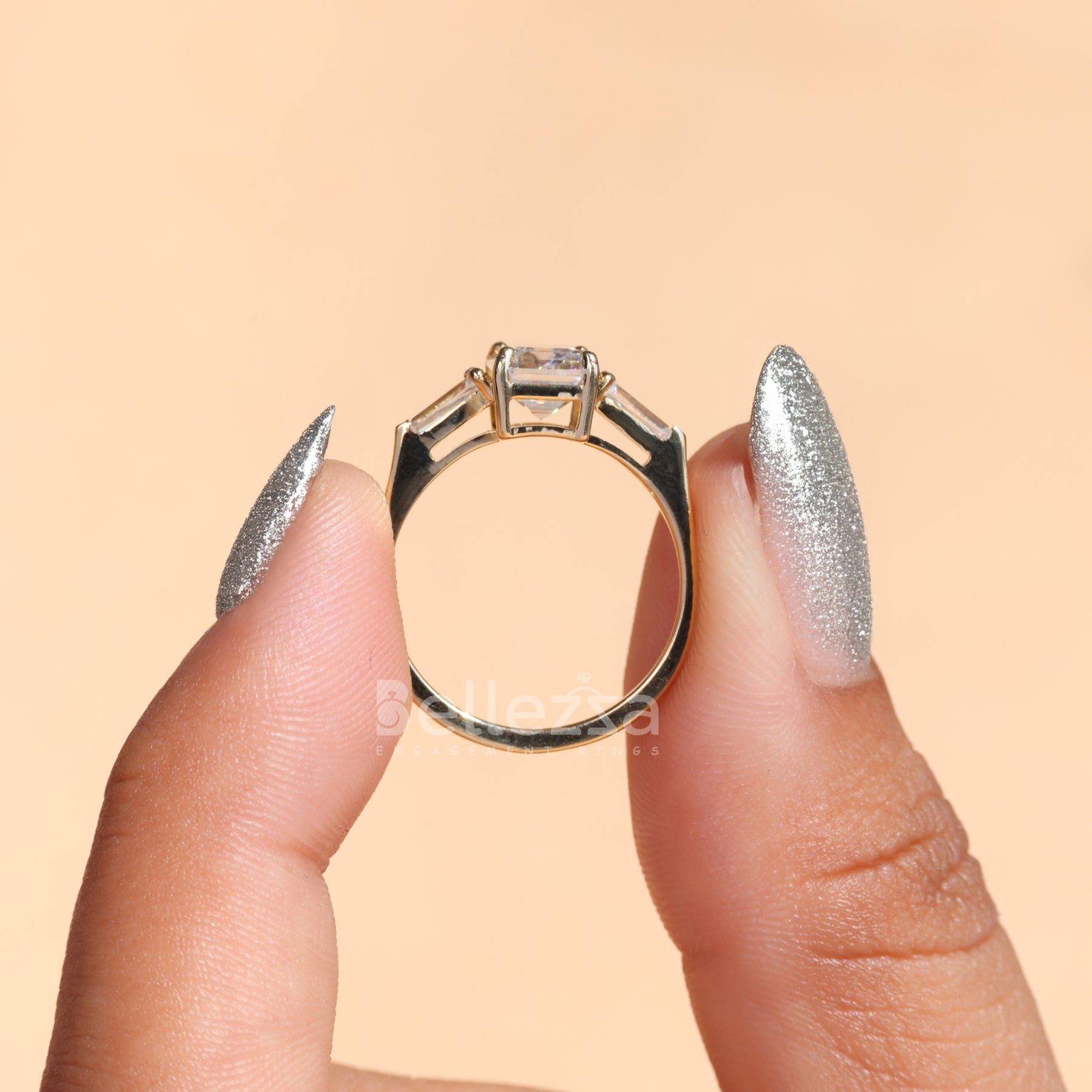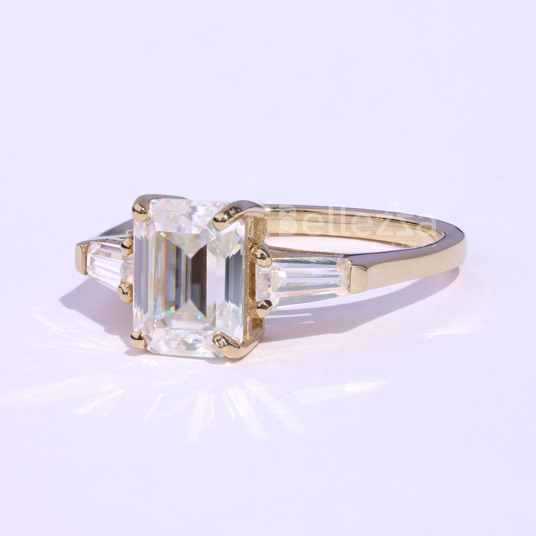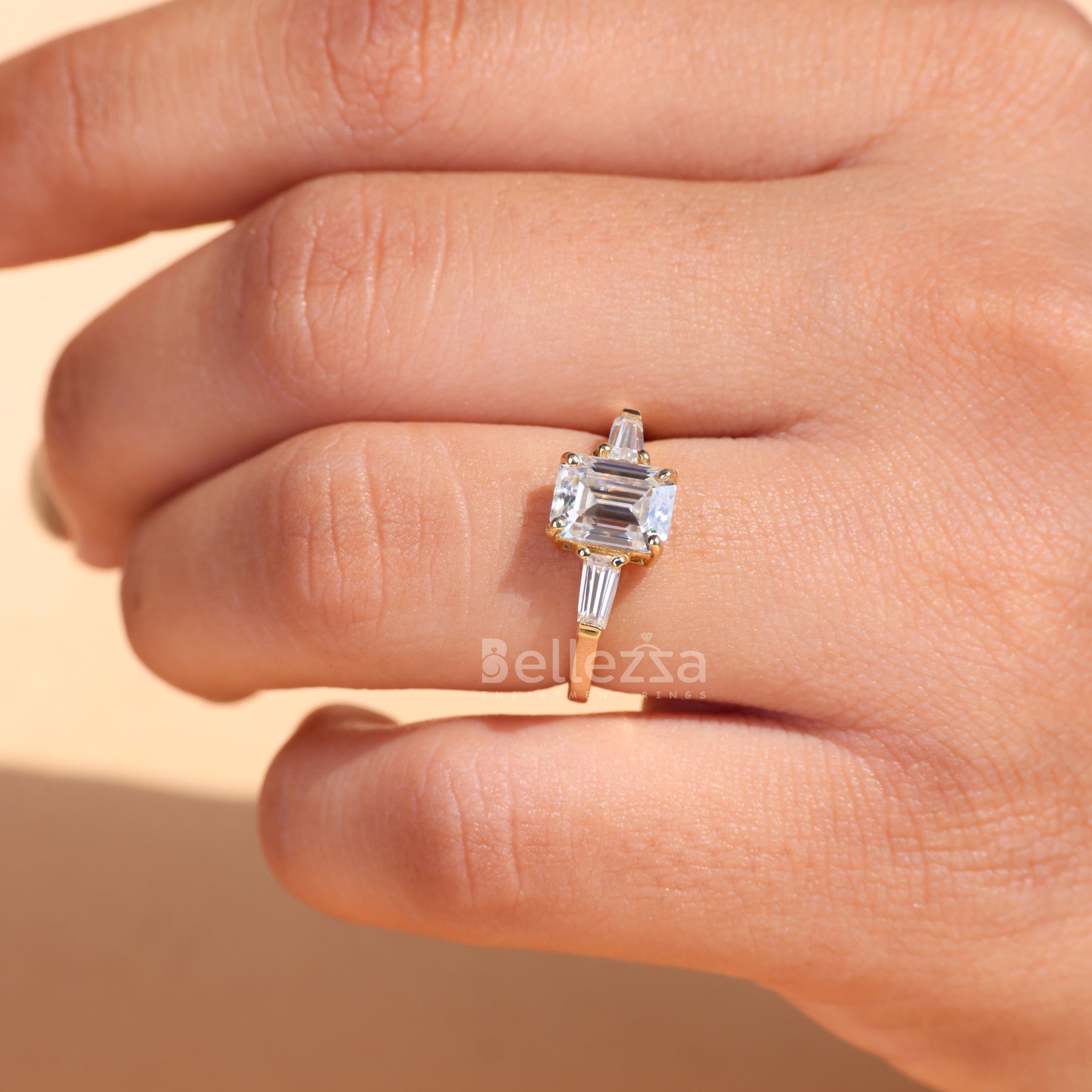 1.75CT Emerald Cut Three Stone Moissanite Engagement Ring - Ready To Ship