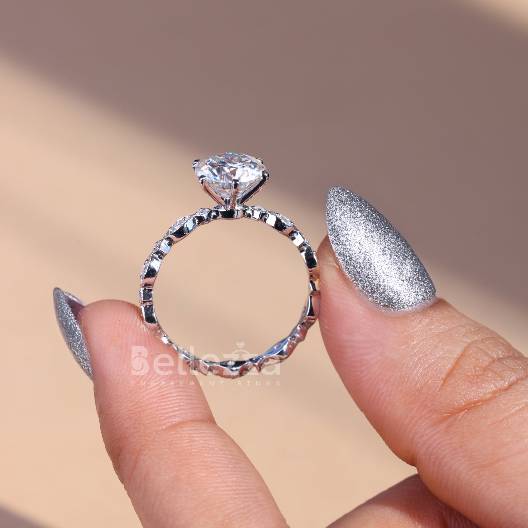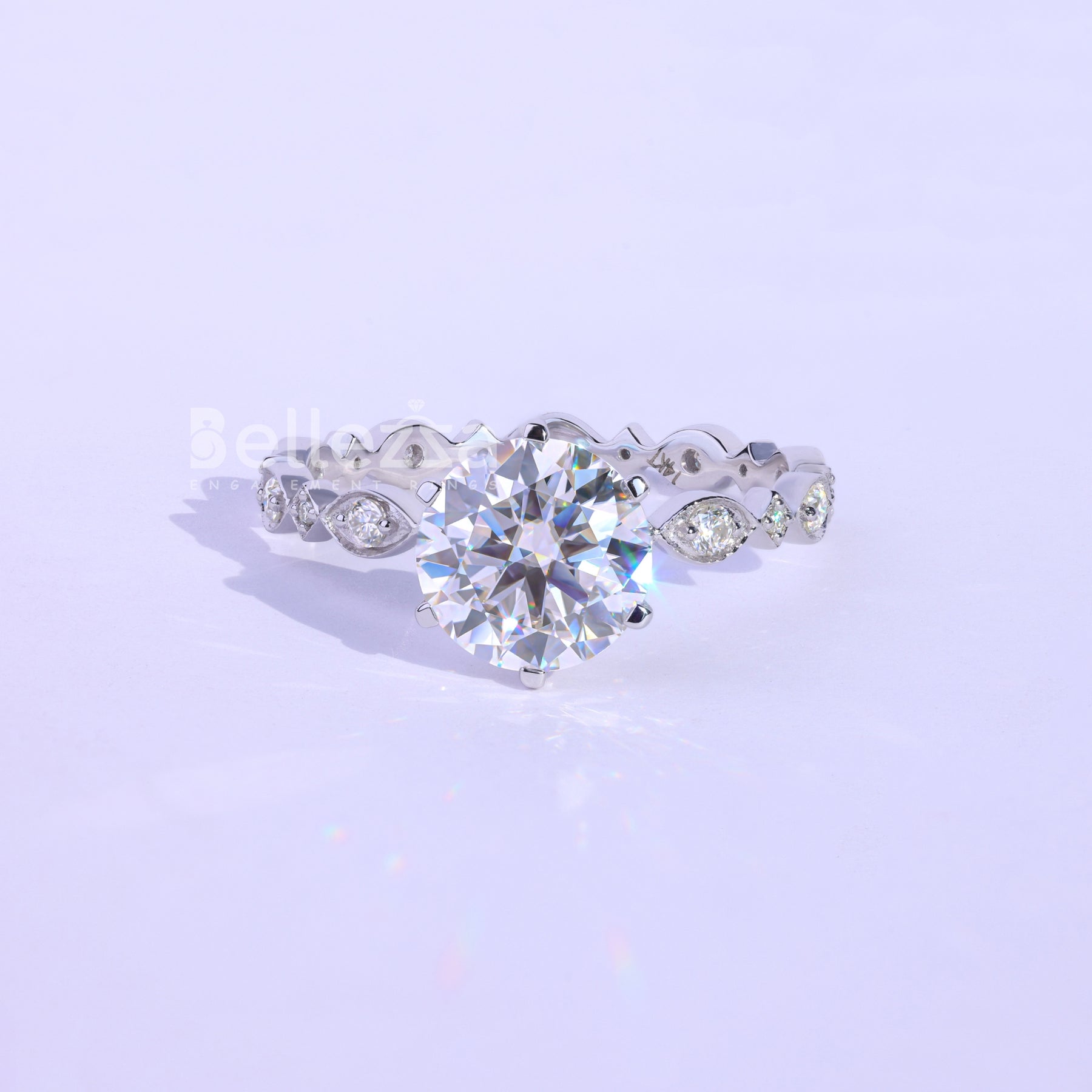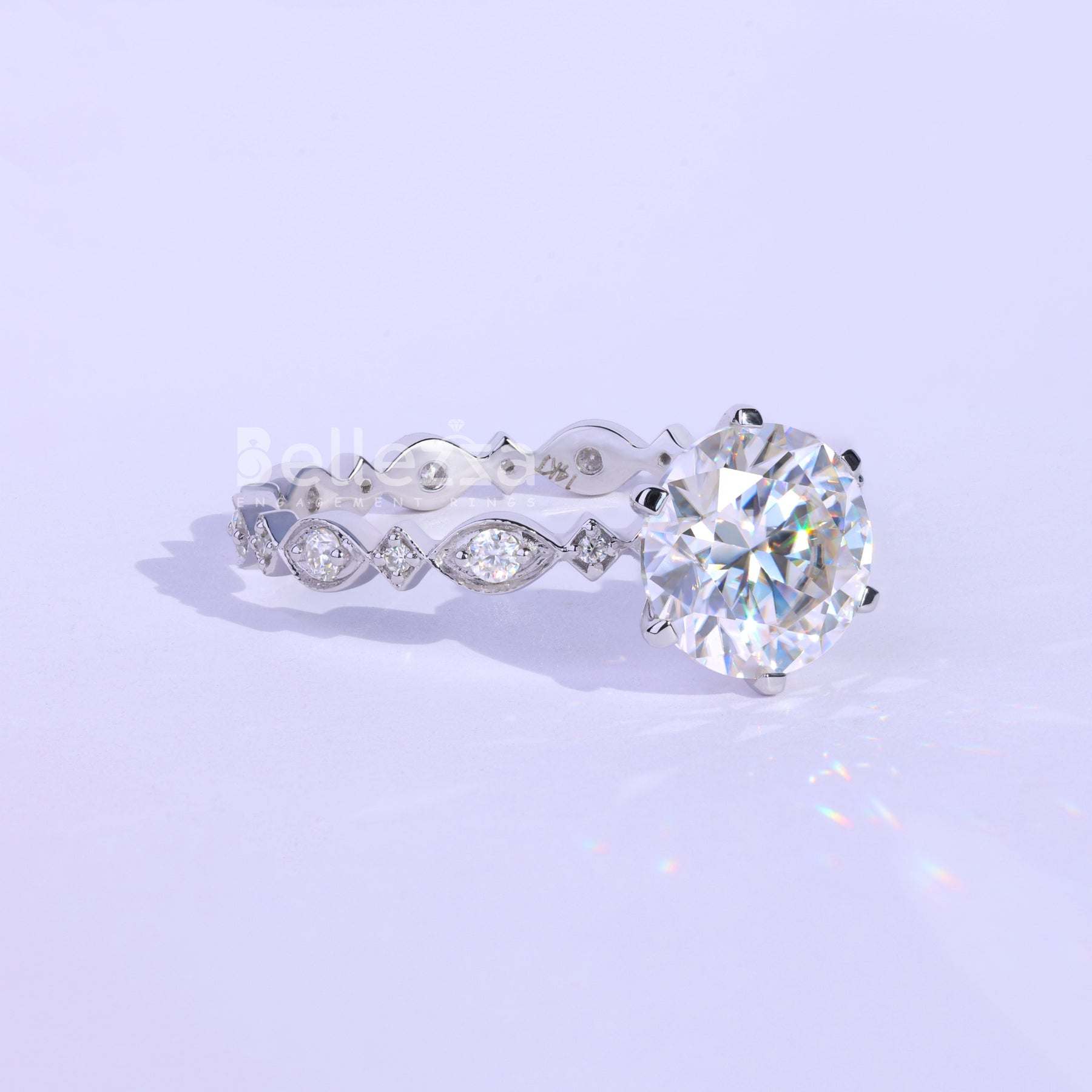 2.0CT Round Cut Vintage Moissanite Engagement Ring - Ready To Ship