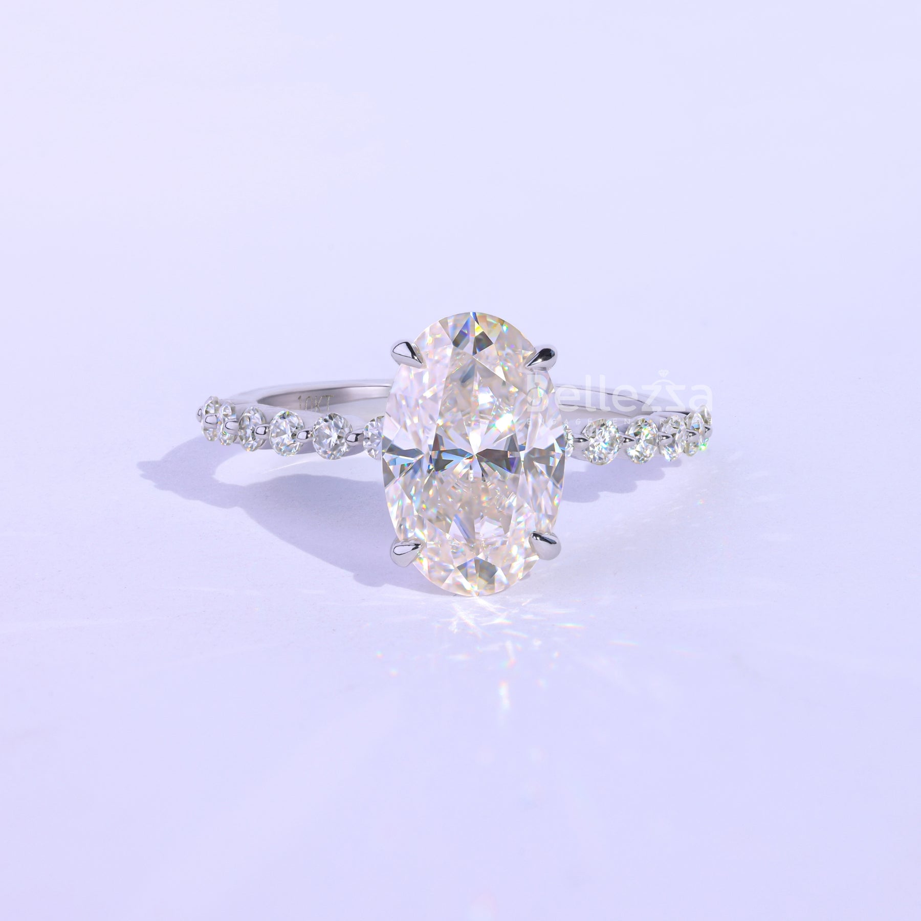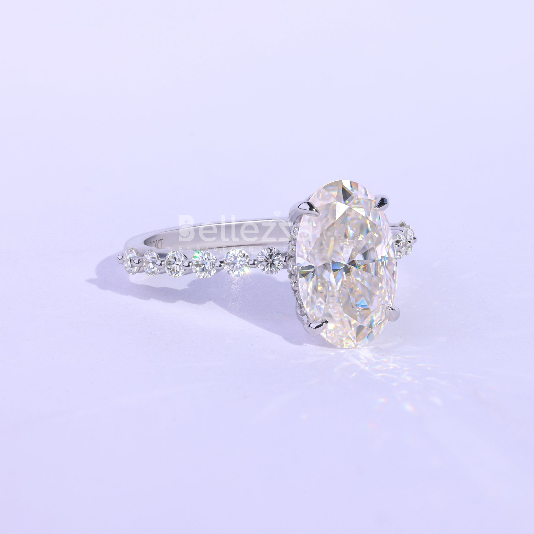 2.50 CT Oval Cut Hidden Halo Moissanite Engagement Ring - Ready To Ship