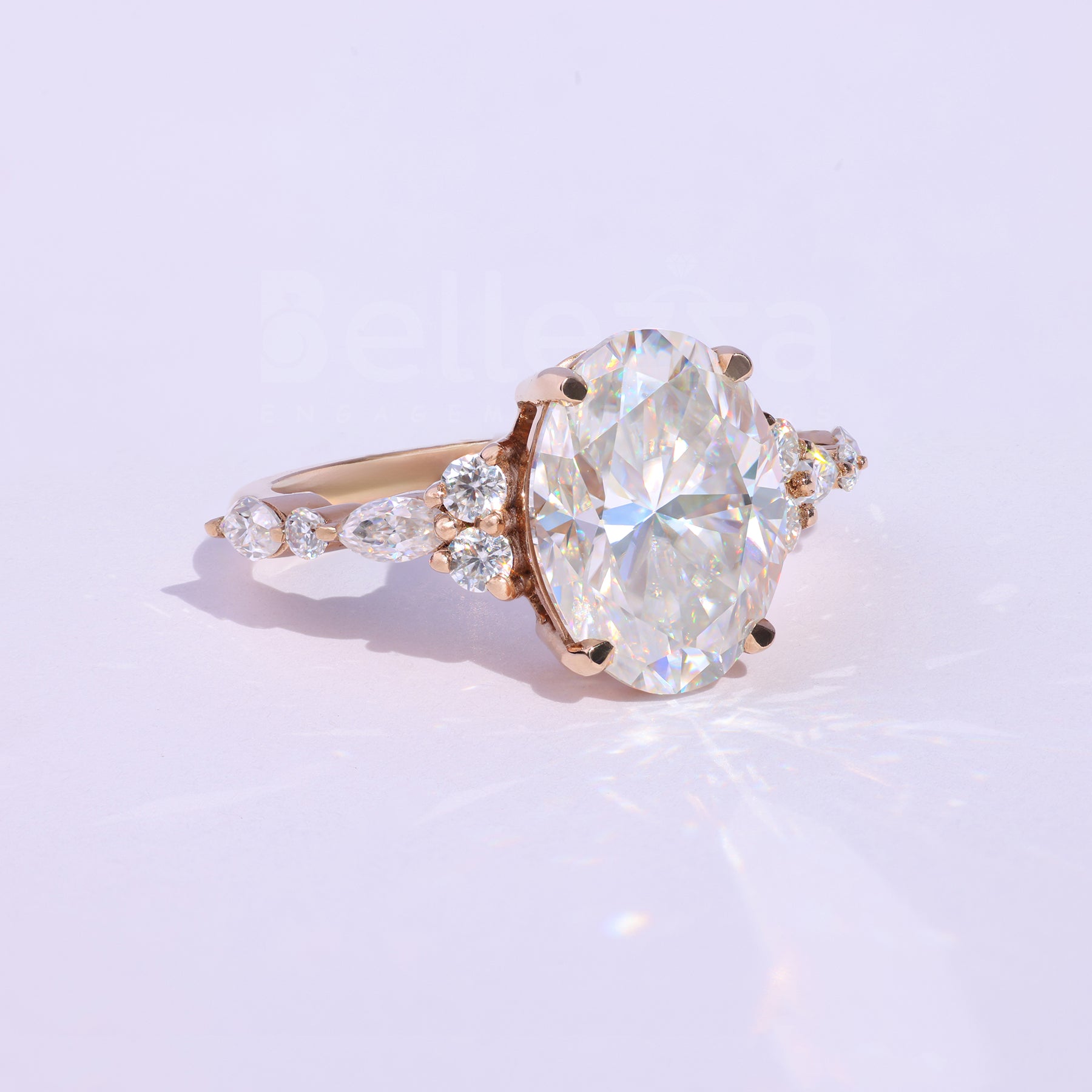 3.50CT Oval Cut Moissanite Cluster Engagement Ring - Ready to ship