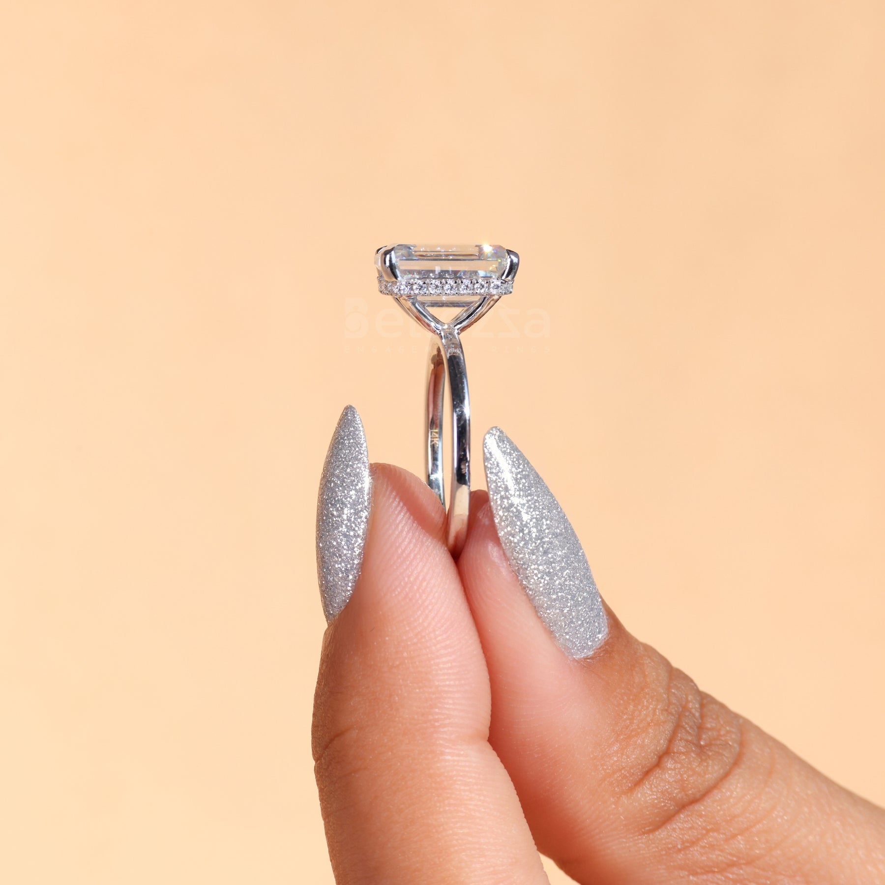 4.0CT Emerald Cut Hidden Halo Engagement Ring - Ready to Ship