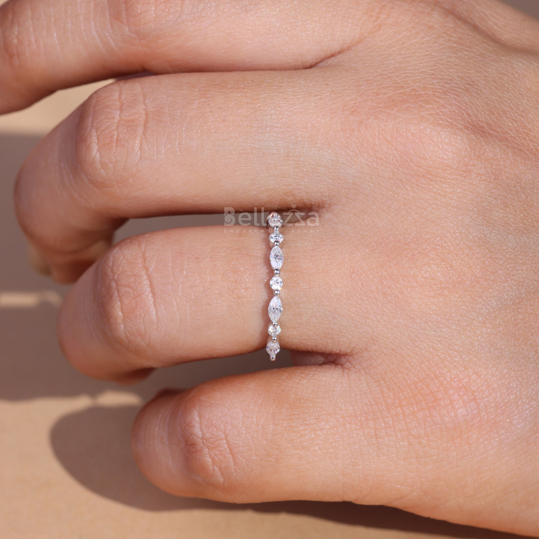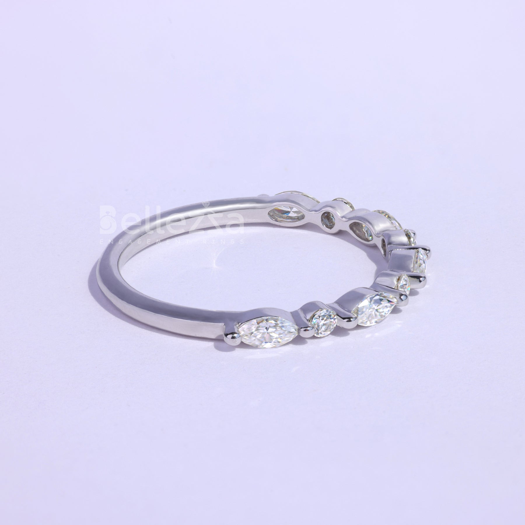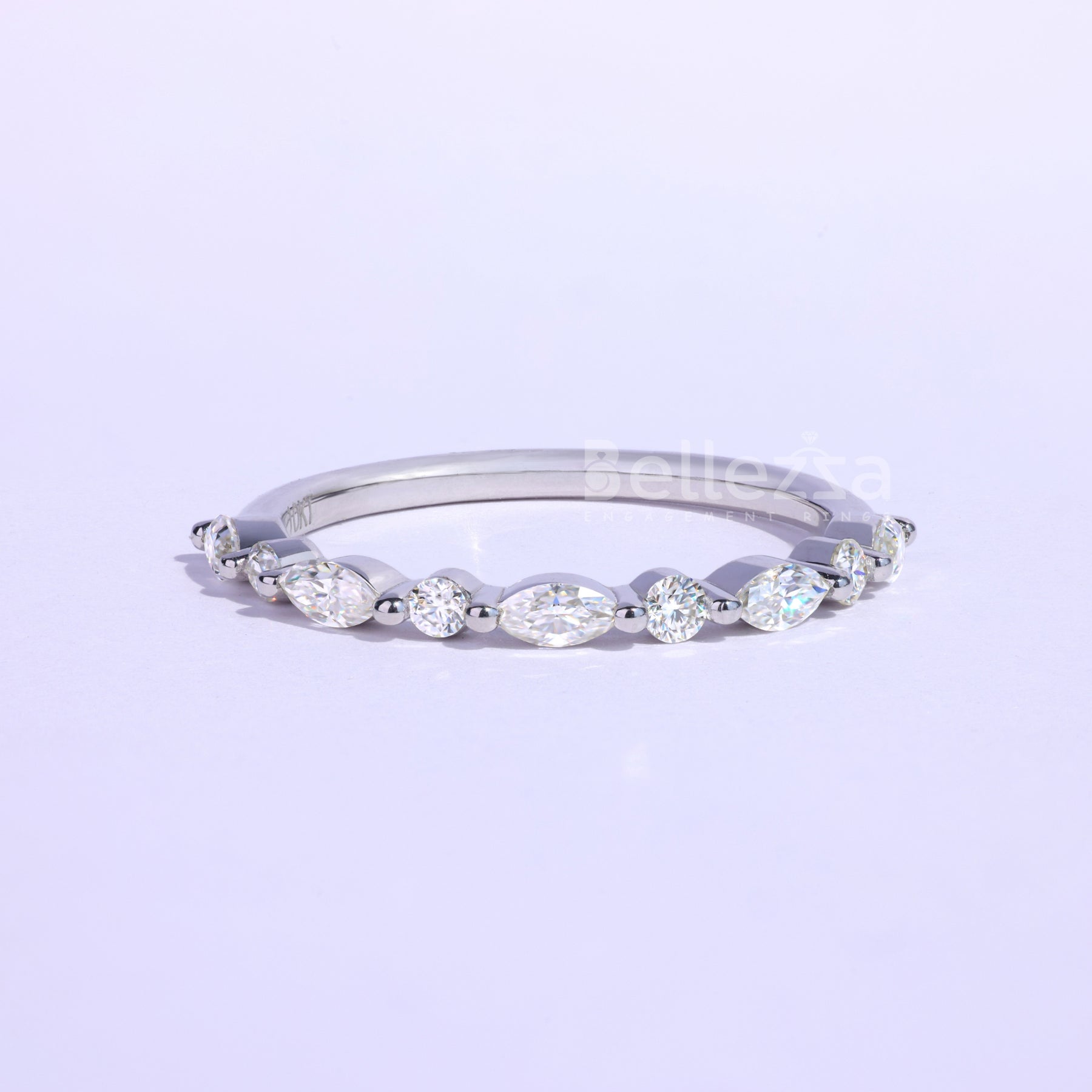 Marquise and Round Cut Half Eternity Wedding Band - Ready to Ship