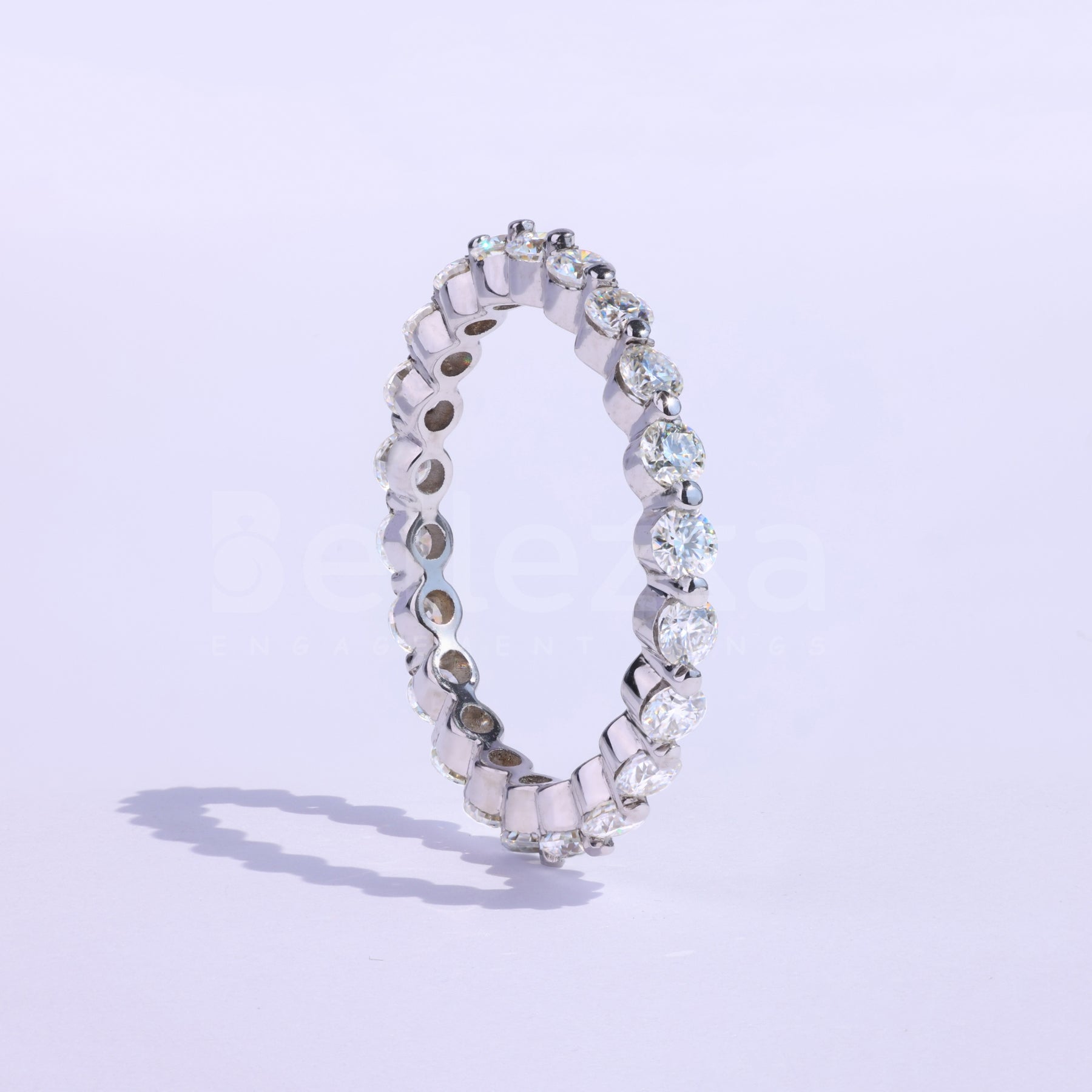 Round Brilliant Bubble Prong Moissanite Wedding Band - Ready to Ship