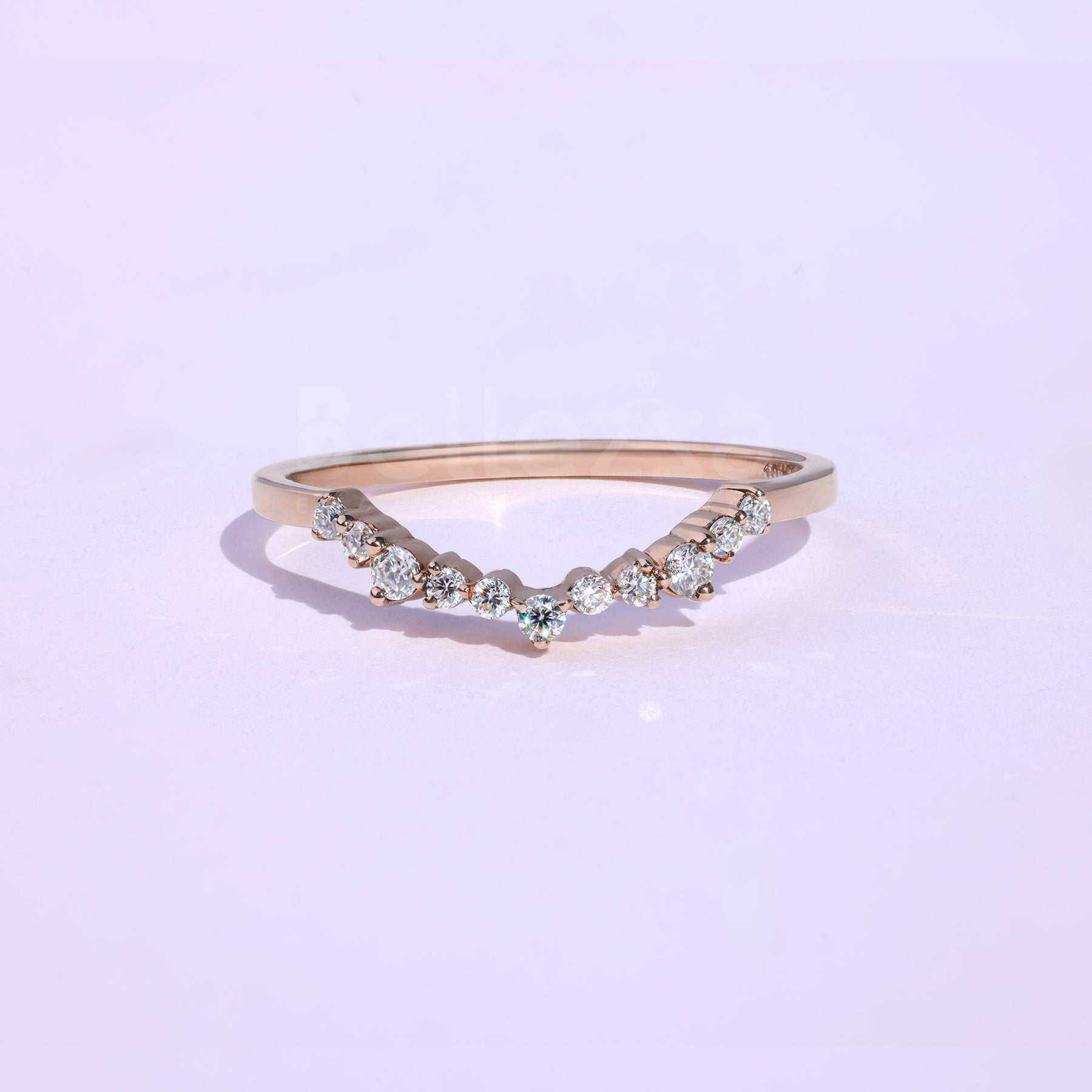 Round Brilliant Diamond Curved Wedding Band - Ready to Ship