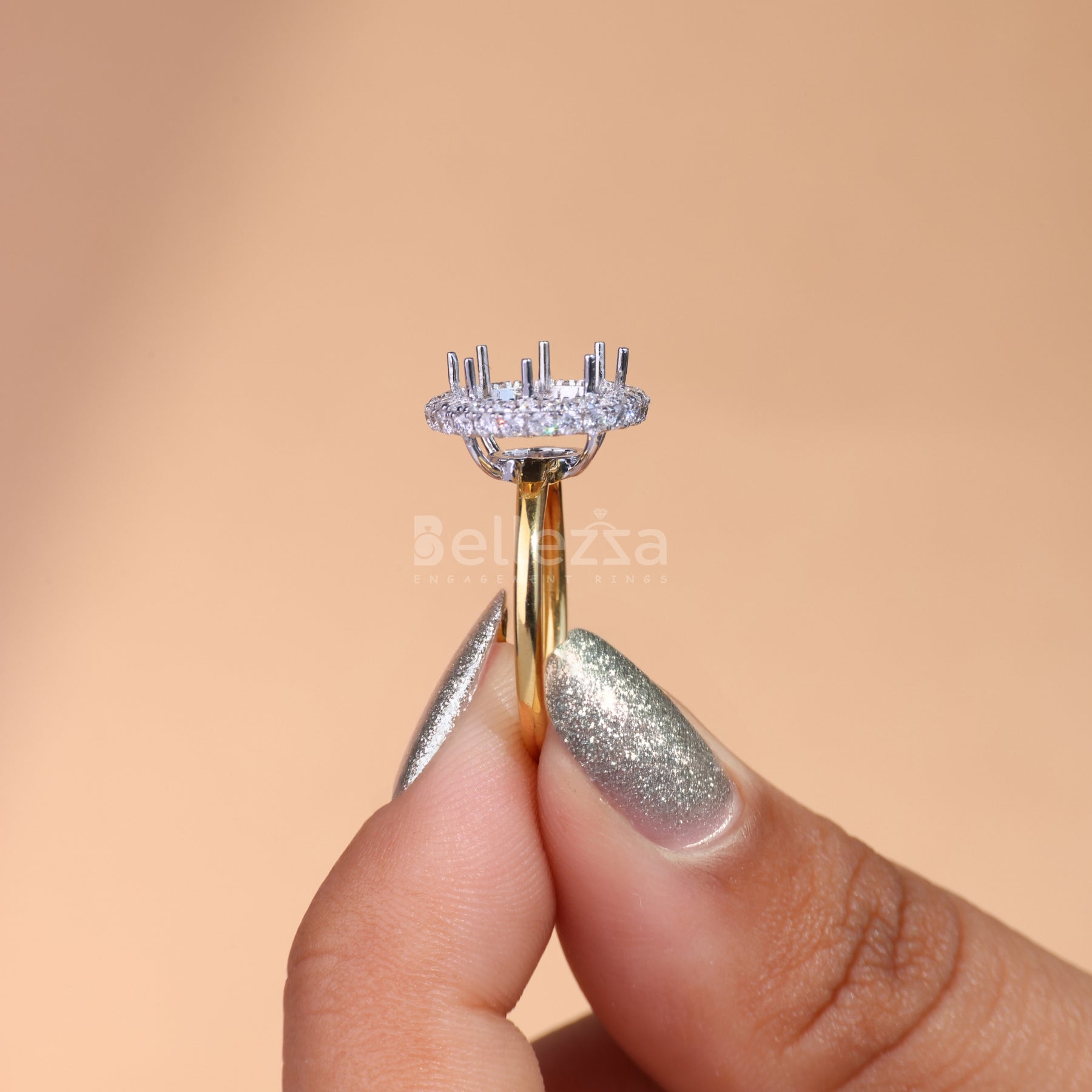 Round Cut Halo Diamond Semi Mount Engagement Ring - Ready To Ship