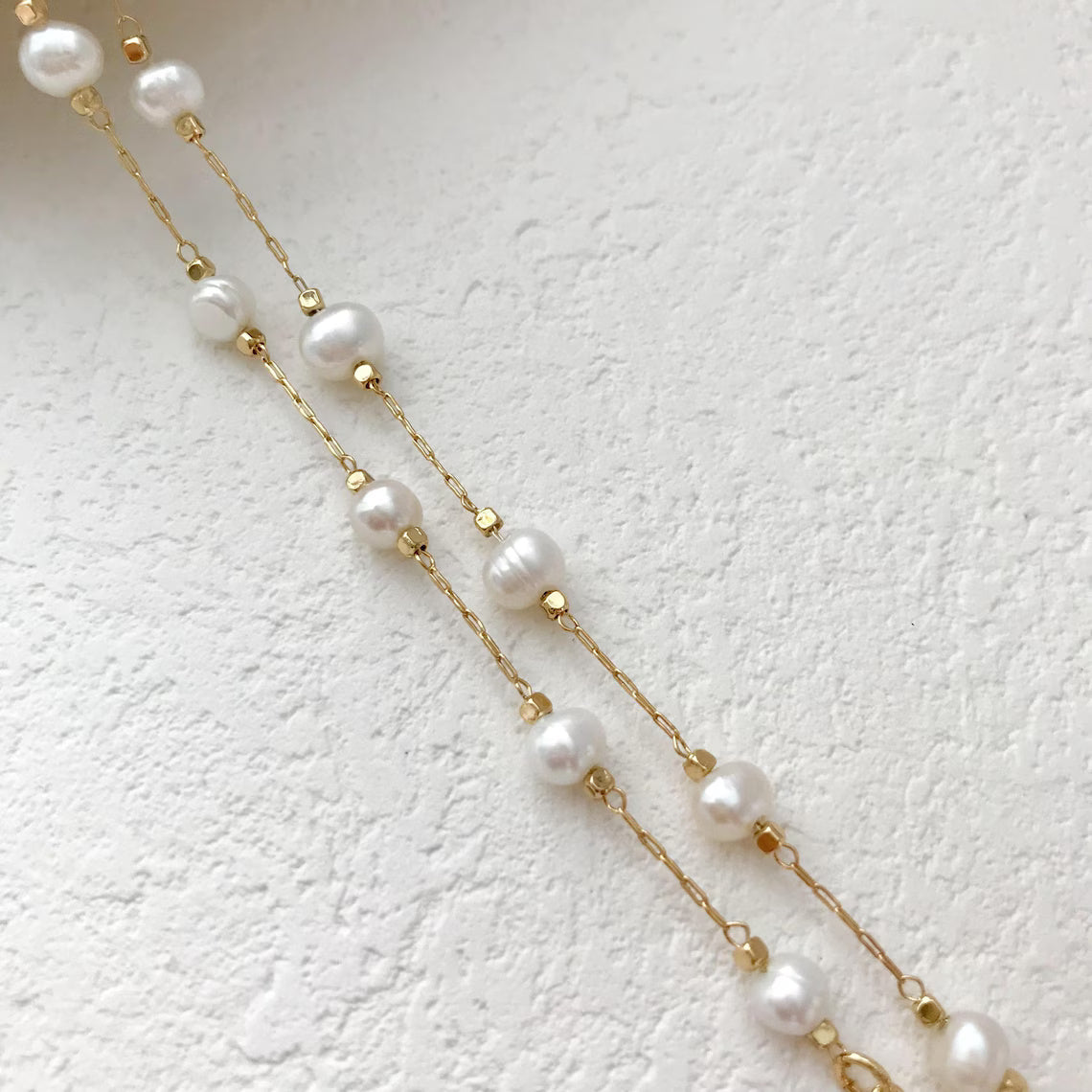 Delicate Freshwater Pearl Chain Necklace For Her -June Birthstone