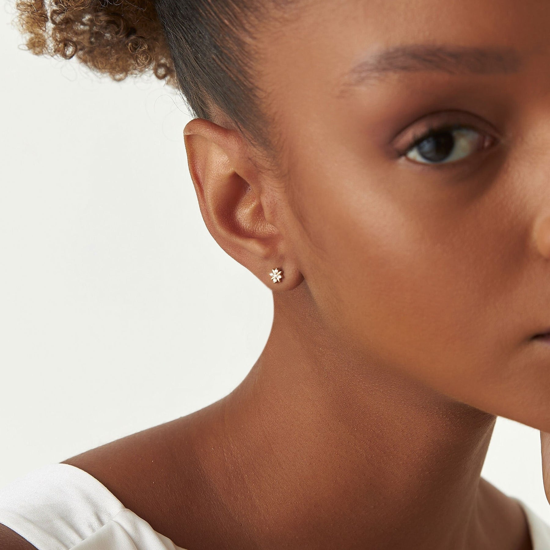 Floral Diamond Stud Earrings Birthday Gift for Women