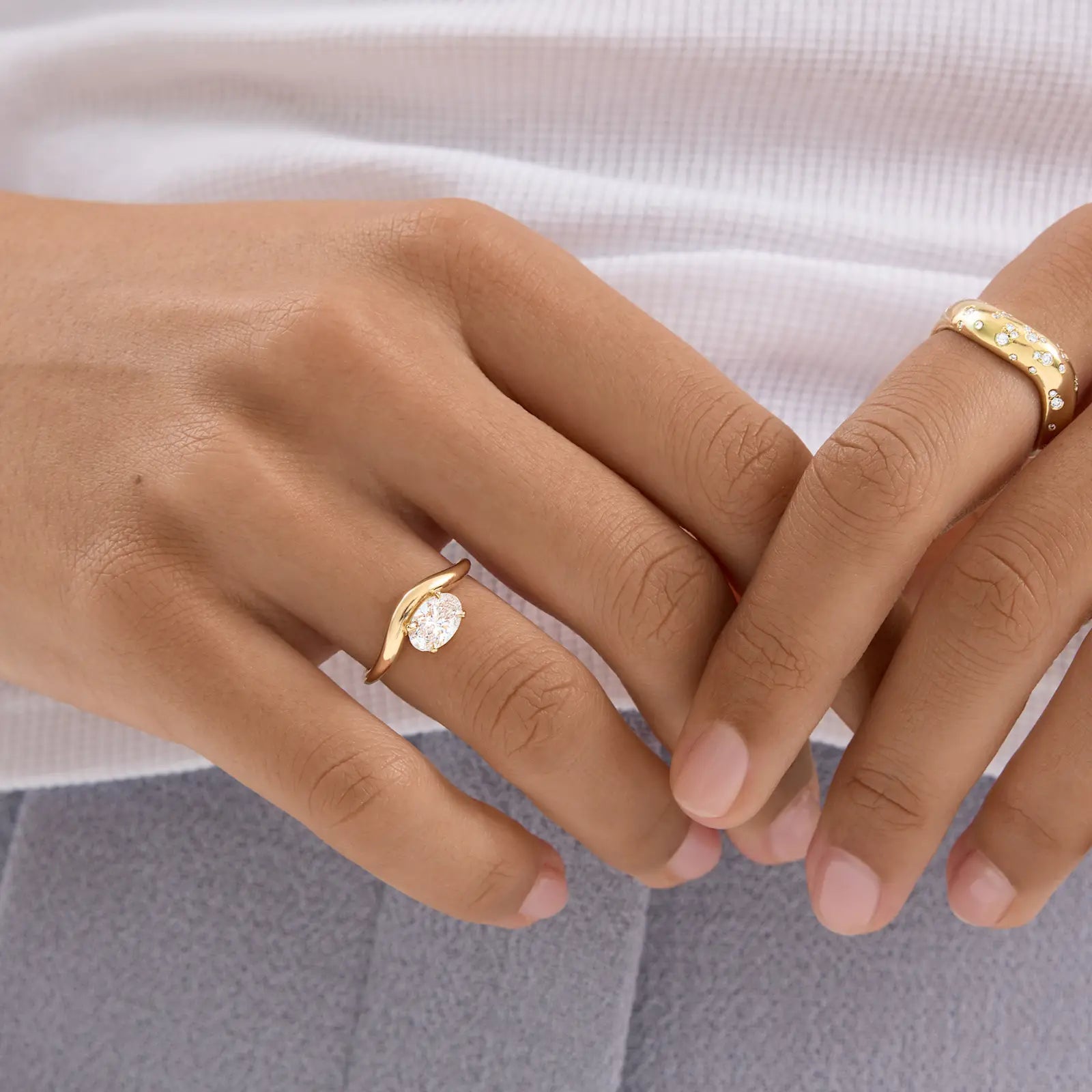 0.80CT East West Oval Cut Solitaire Moissanite Engagement Ring