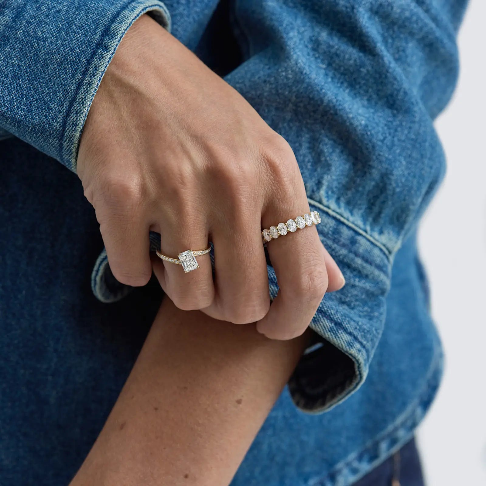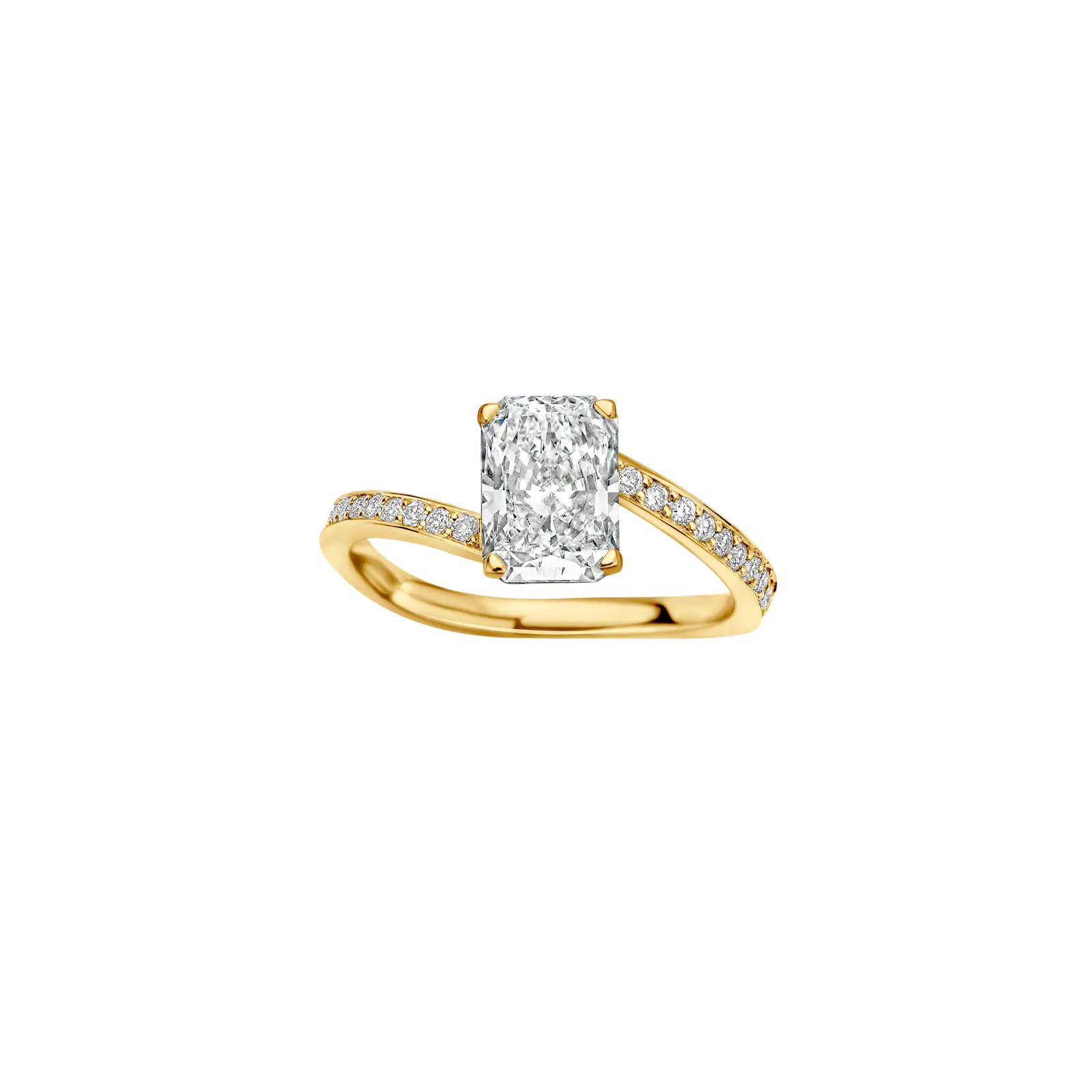 1.50CT Radiant Cut Bypass Shank Pave Set Engagement Ring