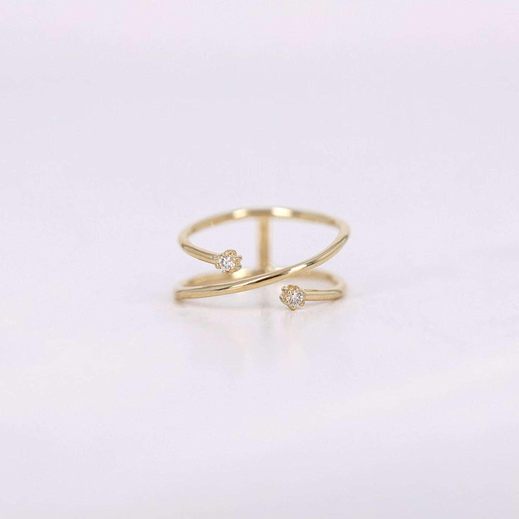 ✥ Introducing our elegant 0.02CT Round Two Stone Open Moissanite Diamond Criss Cross Wedding Band, a symbol of intertwined love and commitment. Crafted in 14K white gold, this unique band features two sparkling round-cut moissanite diamonds set in a criss-cross design. The open setting adds a modern twist, symbolizing the coming together of two souls. Whether worn as a wedding band or stacked with other rings, its delicate yet meaningful design makes it a perfect choice to celebrate your union with style and sophistication. Embrace the beauty of everlasting love with this exquisite piece that captures the essence of your journey together.