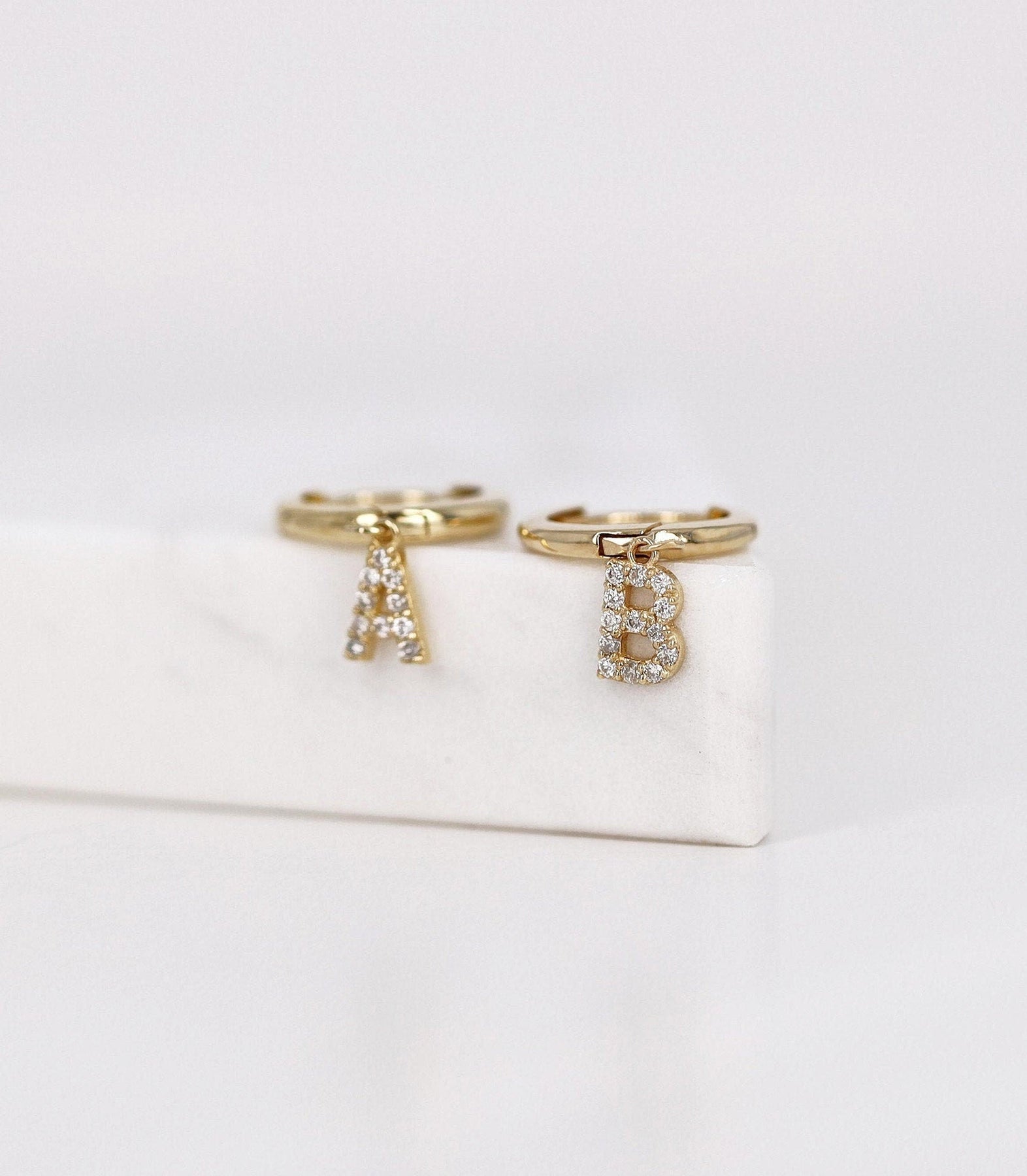 ✥ Introducing our exquisite 0.32CT Round Moissanite Diamond Initial Huggie Hoop Earring for Women, crafted to blend personalized elegance with timeless sophistication. Each earring, fashioned in your choice of [metal type], showcases a round moissanite diamond set within a sleek huggie hoop, adorned with a delicate initial charm. This combination of modern design and personalized detail makes them ideal for everyday wear or special occasions, offering a unique way to express your style and individuality. Whether as a thoughtful gift or a personal indulgence, these earrings promise to enhance any outfit with their sparkling brilliance and personalized charm, reflecting both contemporary fashion and enduring elegance.
