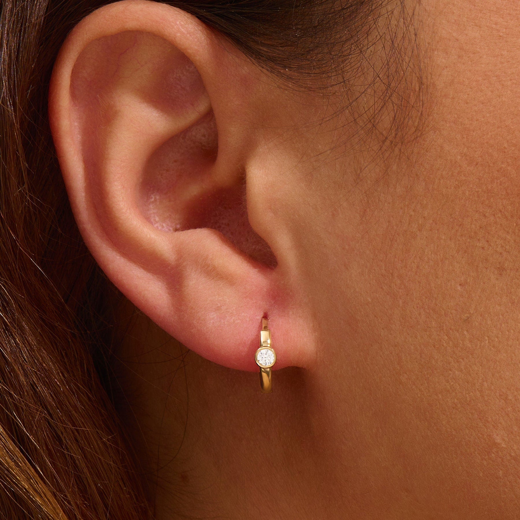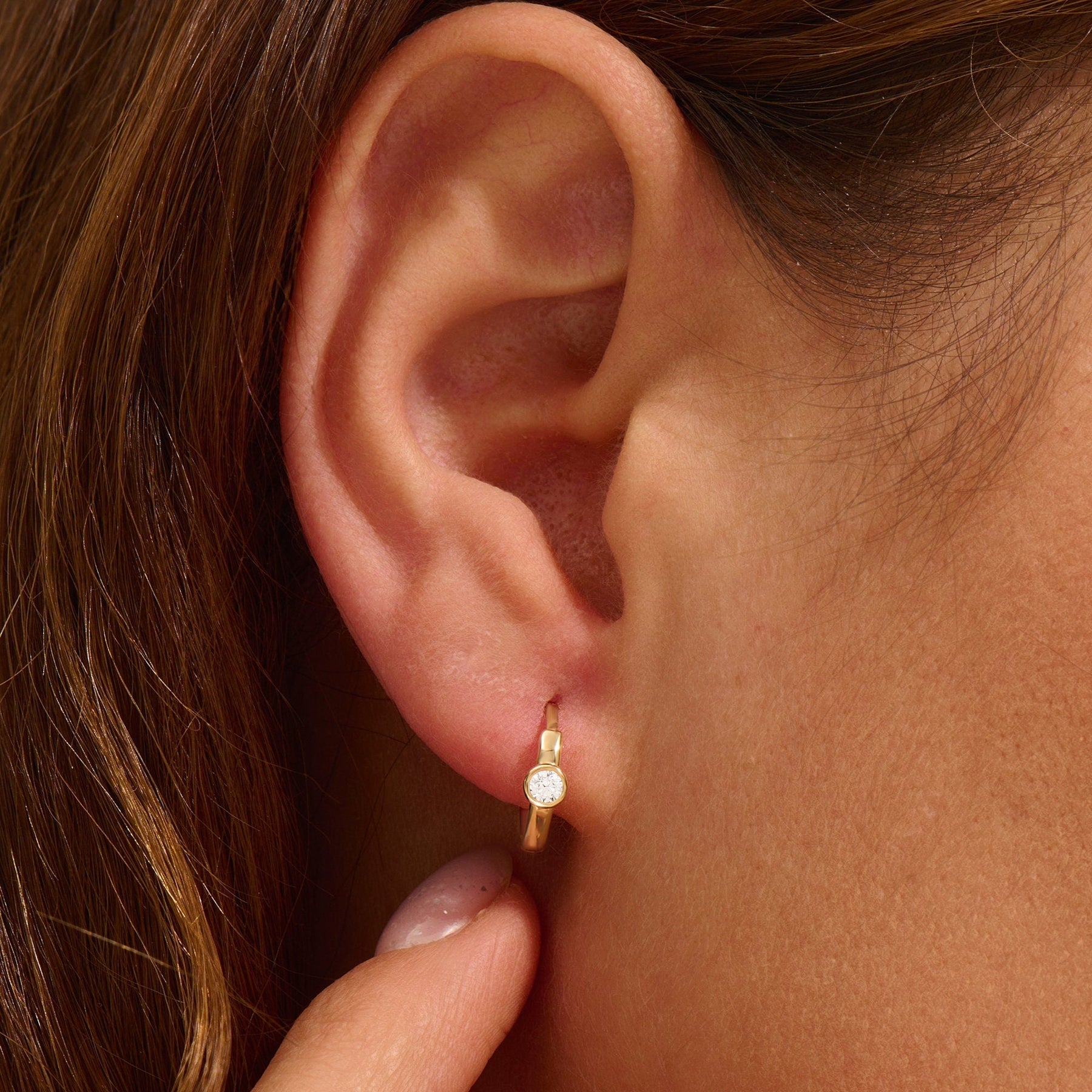✥ Embrace understated elegance with our 0.5CT Bezel Set Round Moissanite Diamond CZ Huggie Hoop Earrings, a perfect blend of sophistication and versatility. Each earring features a bezel-set round moissanite diamond, totaling 0.5 carats, surrounded by shimmering cubic zirconia stones in a huggie hoop design. Crafted in solid gold, these earrings offer durability and timeless appeal, ideal for daily wear or adding a touch of sparkle to any occasion. With their sleek and comfortable fit, they promise to elevate your style effortlessly while complementing any ensemble with their radiant allure. Discover the beauty of understated luxury with these exquisite huggie hoop earrings, designed to enhance your natural charm and grace.