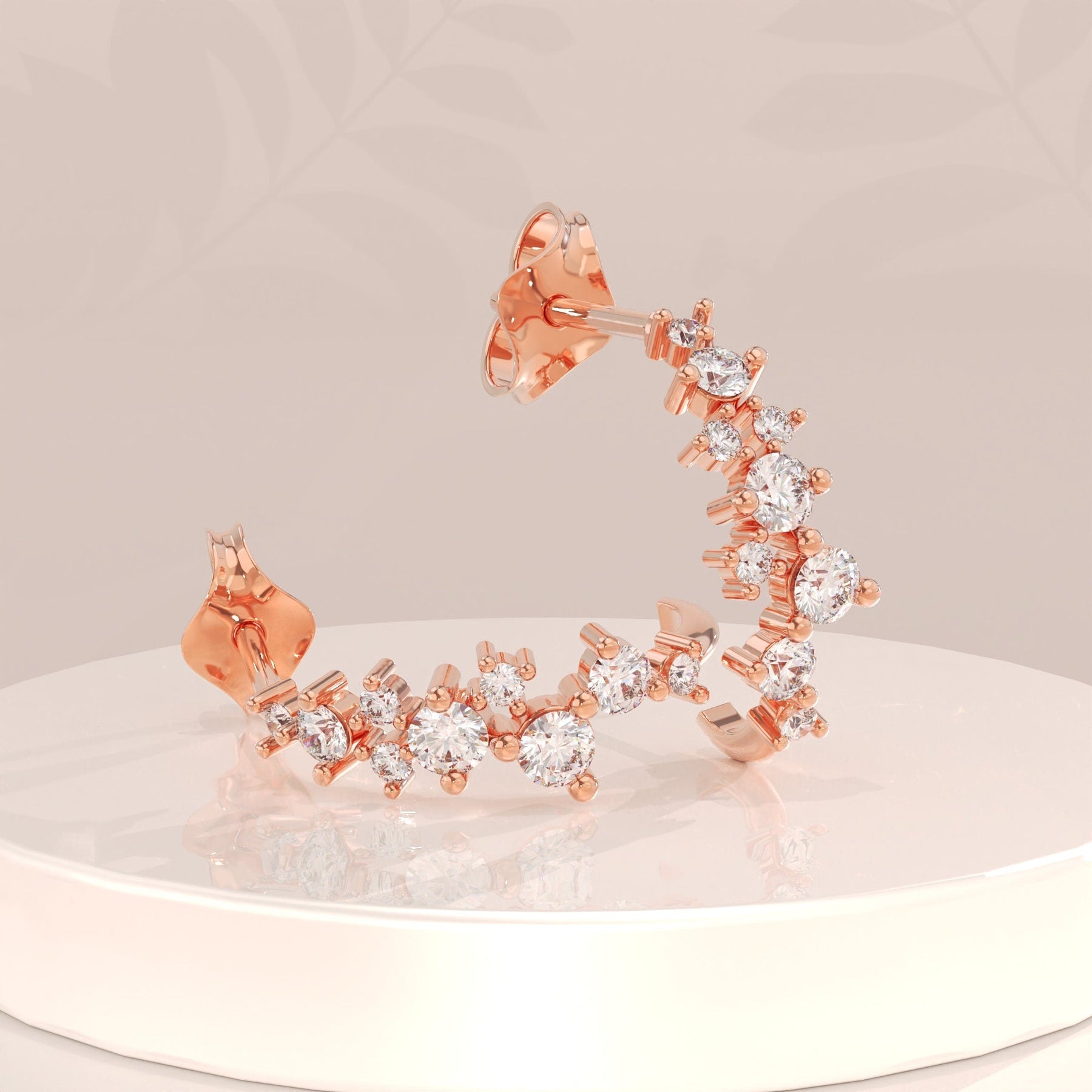0.72CT Round Cluster Moissanite Diamond Half Hoops Earrings In Yellow Gold