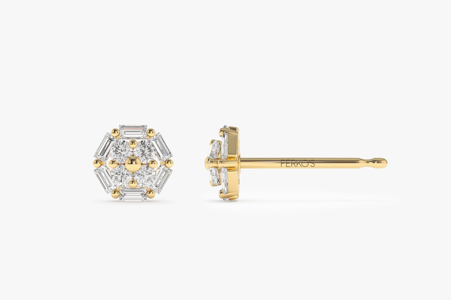 Baguette and Round Diamond Cluster Studs Earrings Gift for Wife